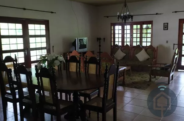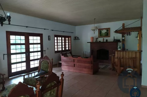 Lindo sítio com área de lazer completa. A casa sede possui 4 dormitórios, sendo 1 suíte com hidromassagem, 2 banheiros amplos, sala de estar com lareira, sala de tv, sala de jantar, copa, cozinha e área de serviço. Área externa com salão de jogos, área com churrasqueira coberta, piscina, vestiário com ducha, campo de futebol, lago, 3 nascentes e riacho.
