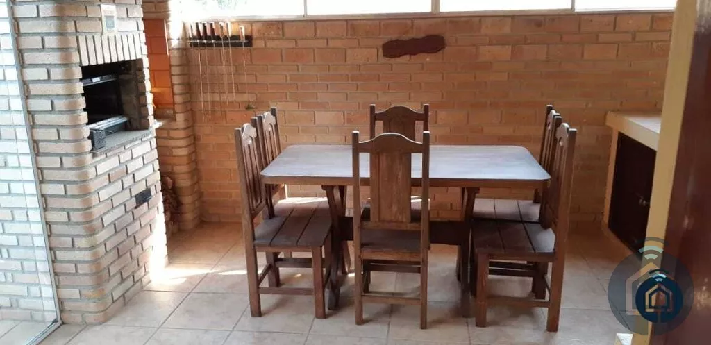 Linda e aconchegante casa mobiliada, com ambiente arejados e bem iluminados, 5 dormitórios, sendo 2 suítes, 1 banheiro social, sala de estar com lareira, lavabo, sala de jantar com varanda, cozinha com armário embutido, área com churrasqueira e forno de pizza, cozinha planejada, edícula, área verde com árvores frutíferas, sistema de aquecimento solar e elétrico, garagem coberta para 2 automóveis com portão automatizado.