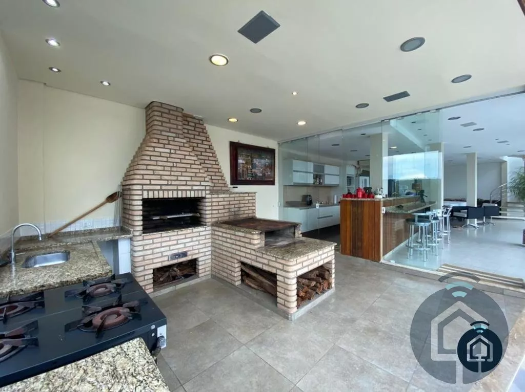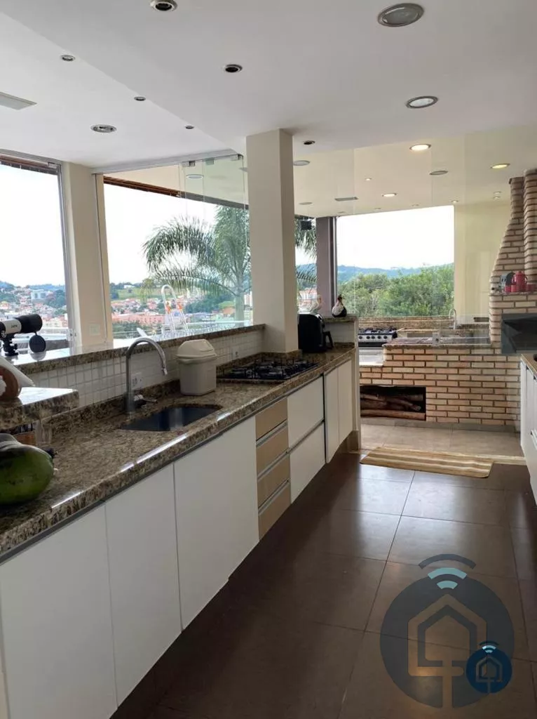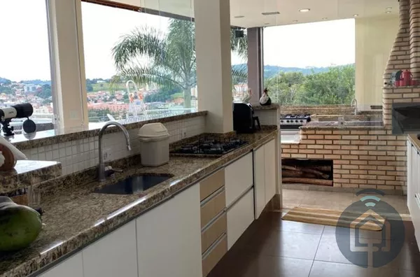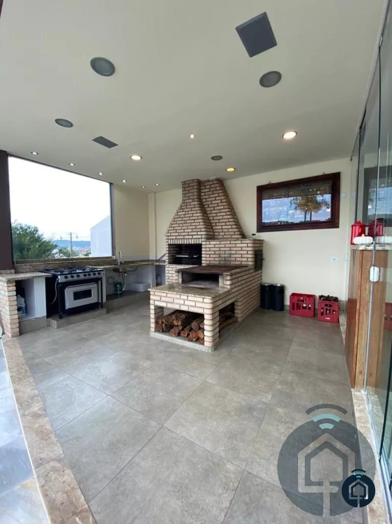 Casa de alto padrão, com excelente acabamento, 3 dormitórios com varanda, sendo 1 suíte master com closet e hidromassagem, sala de estar, lavabo, sala de jantar, copa, cozinha planejada, lavanderia na área externa, salão de festas, linda área gourmet com vista para a cidade, cozinha planejada, bar, área com churrasqueira e forno a lenha, banheiro masculino e feminino, piscina, deck amplo, academia, edícula com 1 dormitório e 1 banheiro, jardim, casa de boneca e garagem para 2 automóveis.
