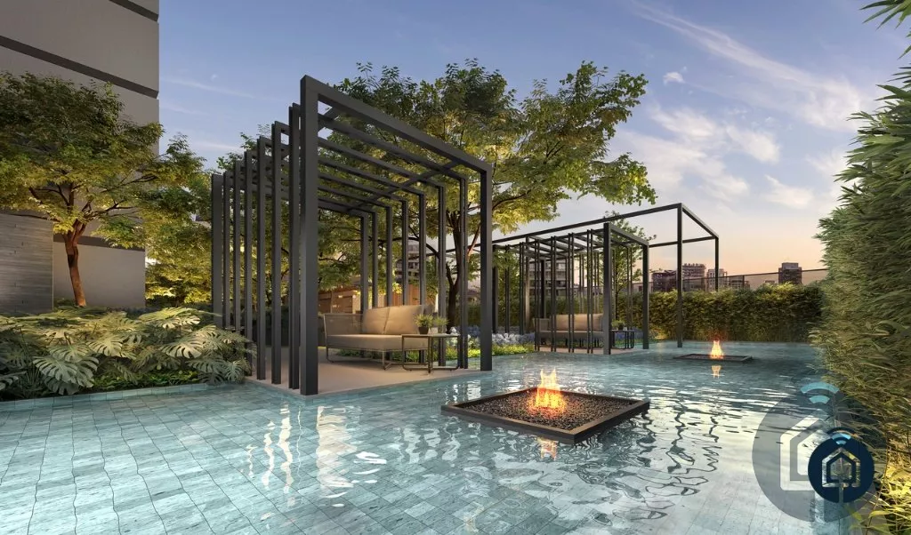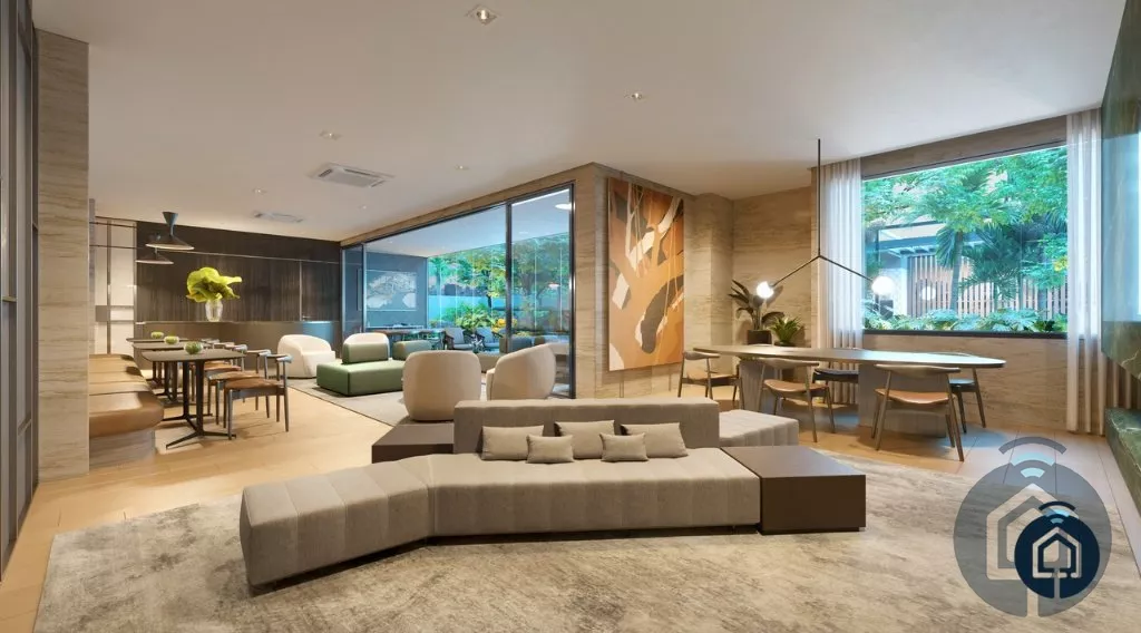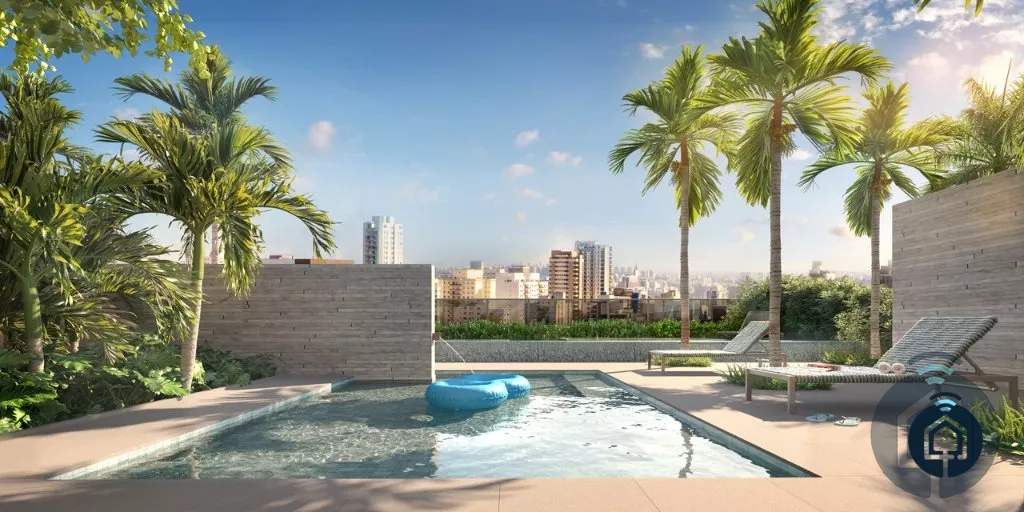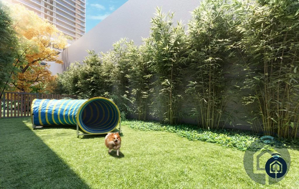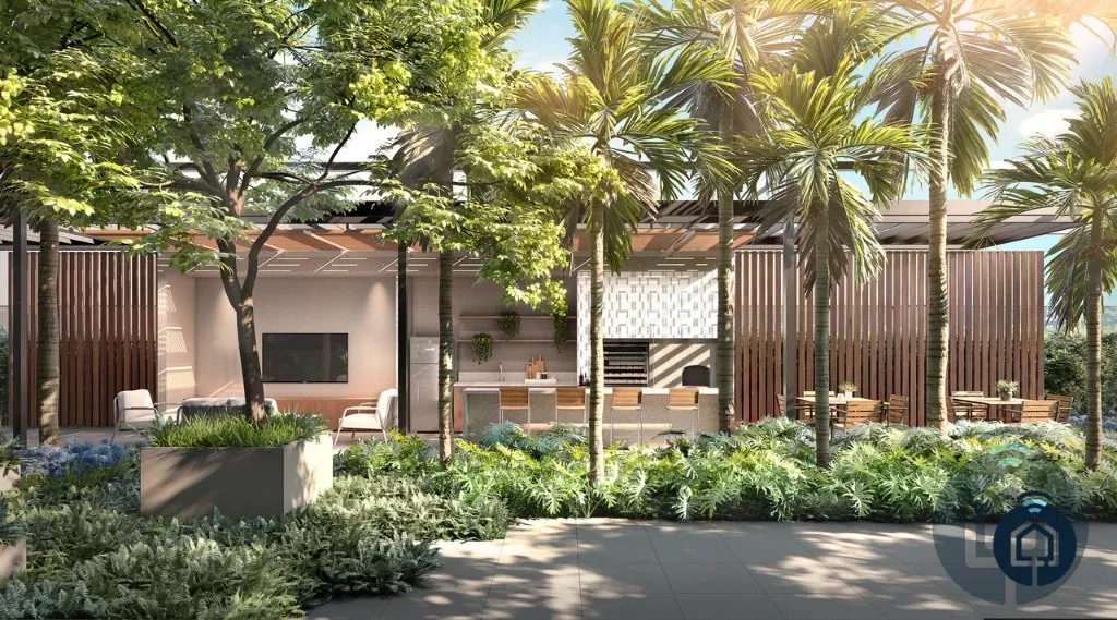 Apartamentos com 4 dormitórios, sendo 1 suíte com closet e 1 suíte simples, 1 banheiro social, sala de estar dois ambientes, varanda gourmet ampla, lavabo, cozinha, área de serviços, banheiro de serviço e 2 vagas de garagem. O condomínio conta com área de lazer completa com salão de festas com terraço, espaço gourmet, churrasqueira com forno de pizza, piscina adulto, deck molhado, piscina infantil, solário, sauna, sala de massagem, espaço fitness, terraço fitness, terraço boxe, quadra recreativa, salão de jogos, brinquedoteca, playground, bangalôs e jardins com espelho d'água. Além disso possui portaria, delivery space, acesso para pedestres e acesso de serviços.