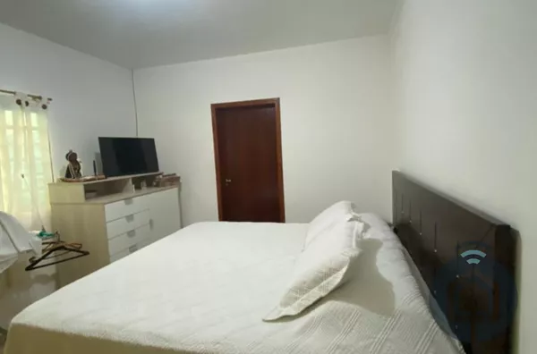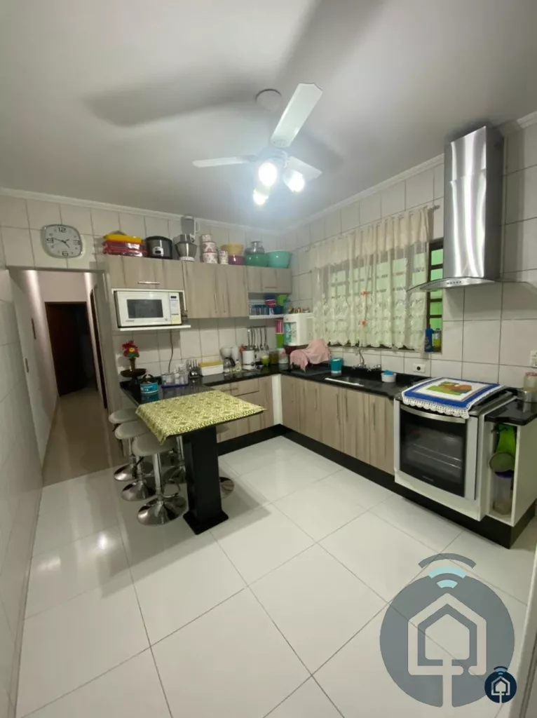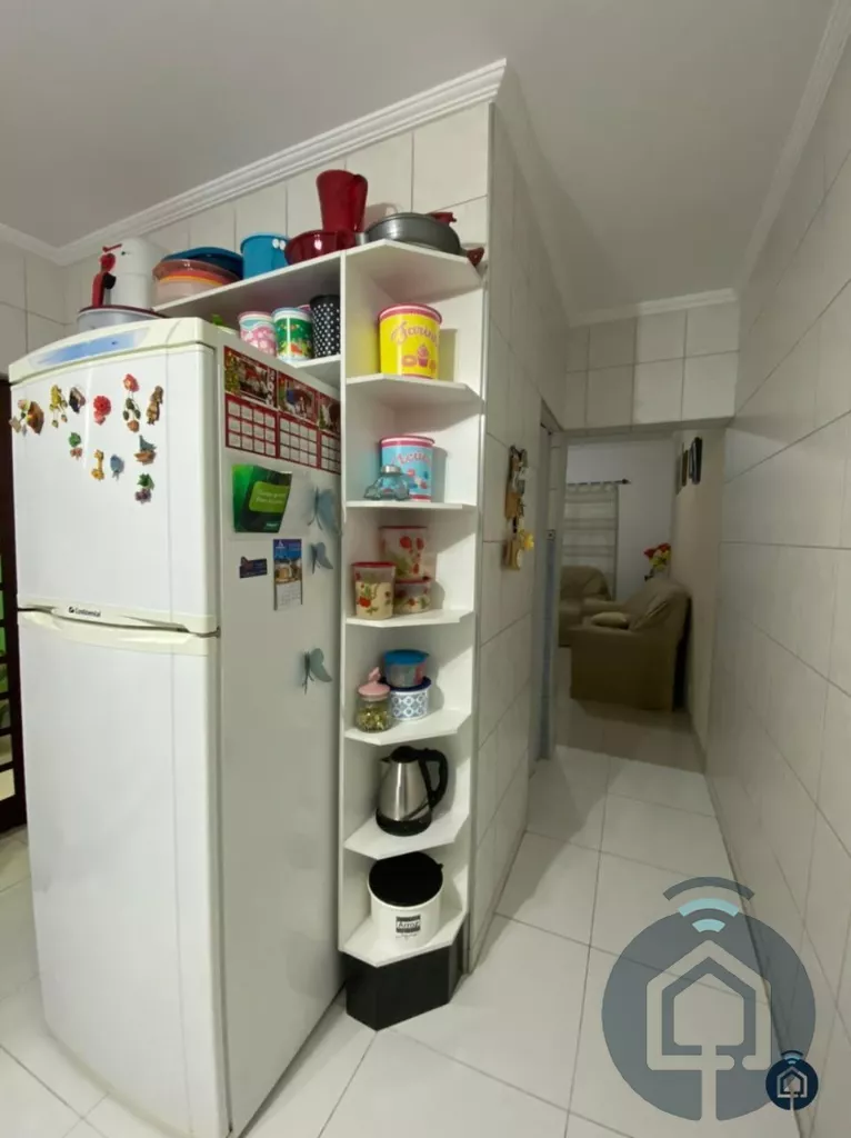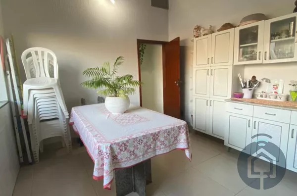 A sala de estar é ampla e acolhedora, perfeita para momentos de lazer e confraternização. A cozinha planejada é um destaque à parte, com muito espaço e organização, ideal para quem gosta de preparar as refeições com praticidade. Ao lado, a despensa oferece um ótimo espaço de armazenamento.