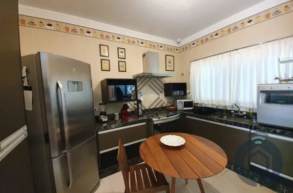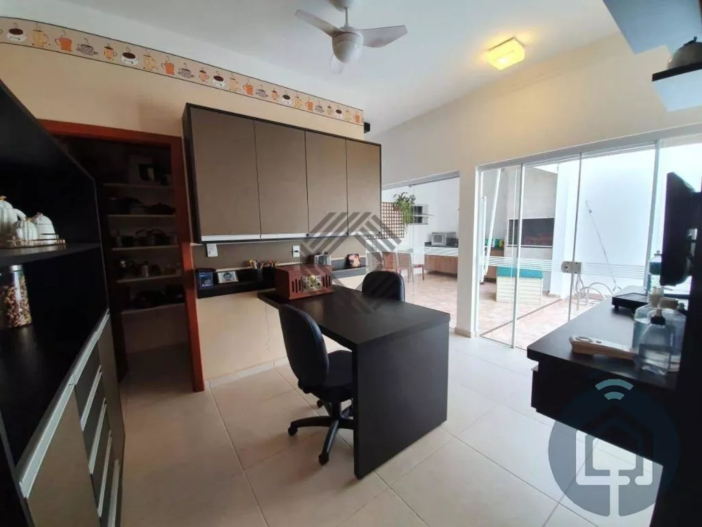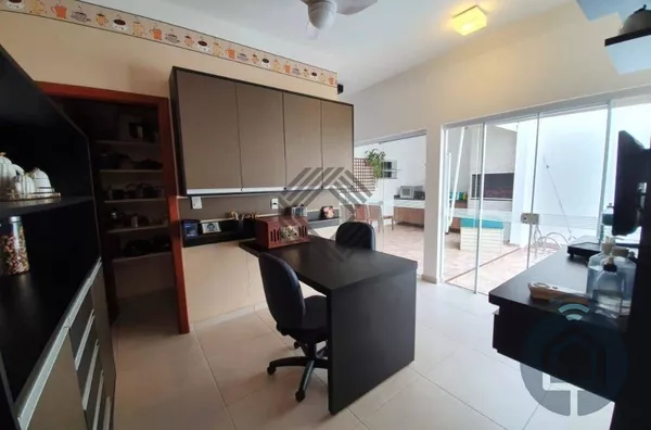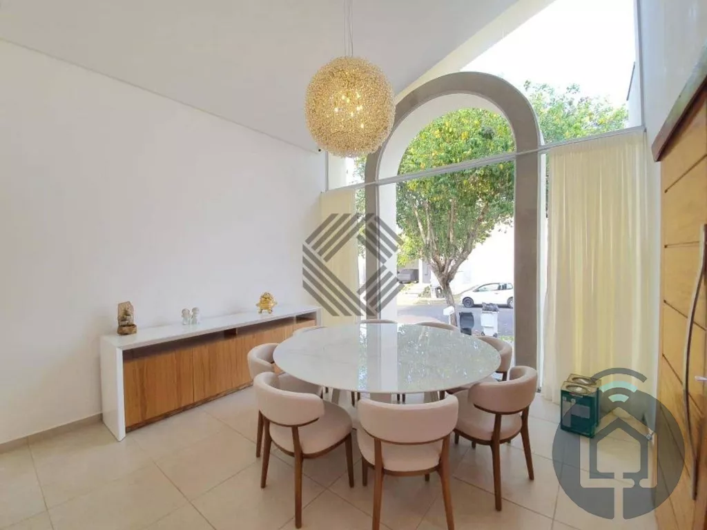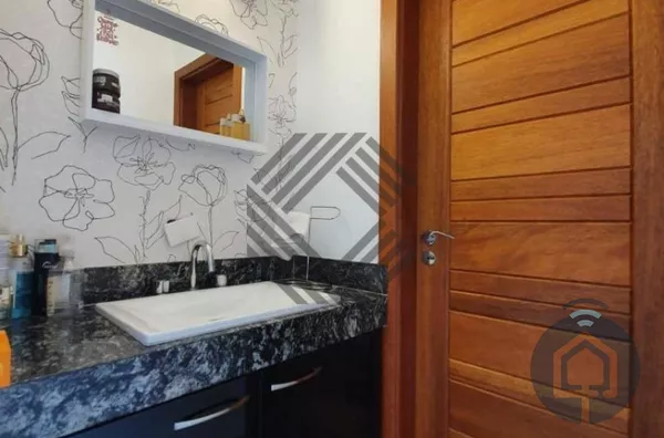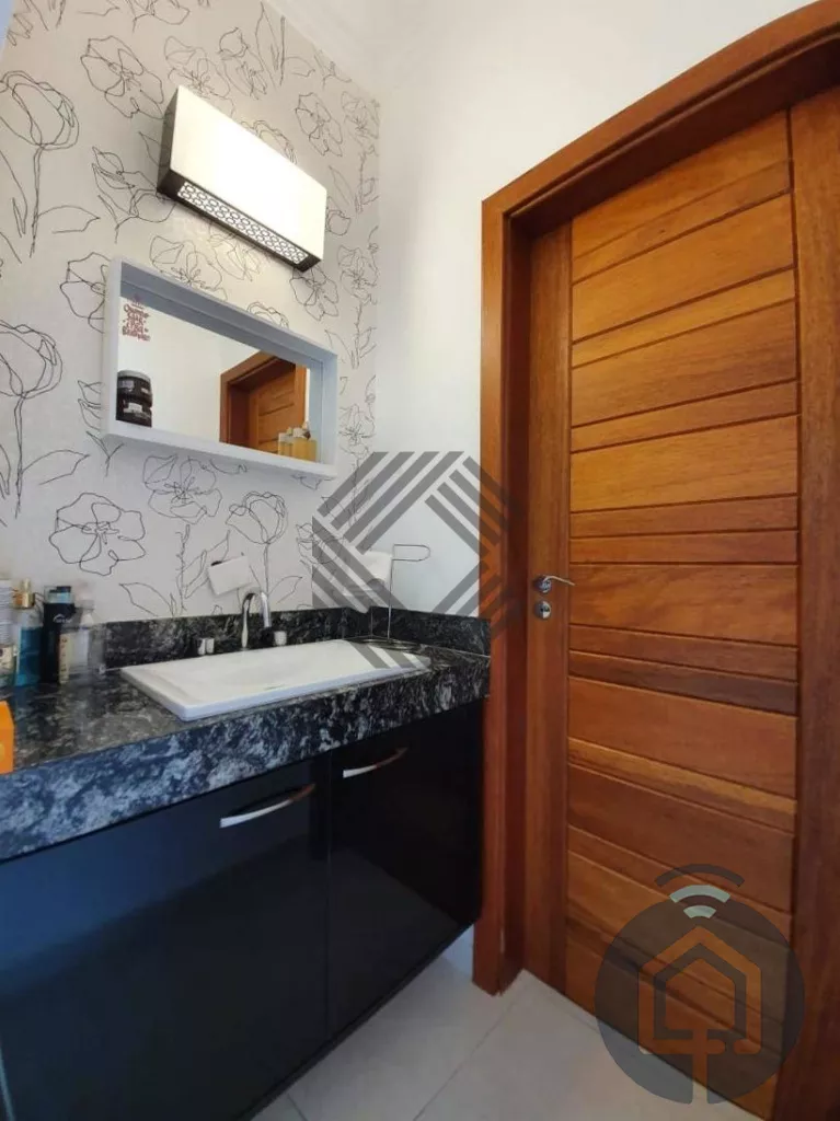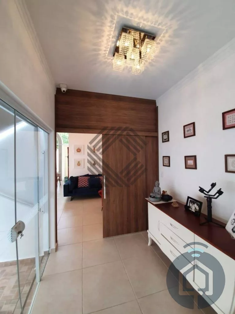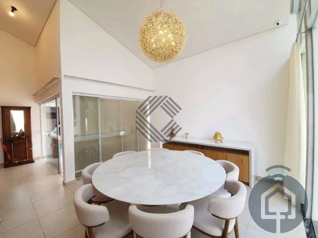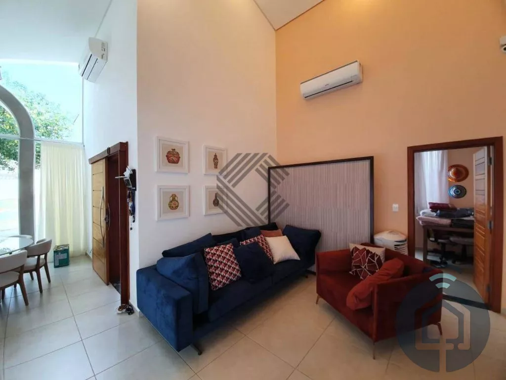 Linda casa térrea em condomínio de alto padrão, com excelente acabamento, pé direito duplo, contendo 3 suítes, sendo 1 suíte master com closet com armários modulados, sala de estar dois ambientes com ar condicionado, lavabo, escritório, copa, cozinha planejada, despensa, área de serviços, banheiro de serviços, área gourmet com churrasqueira, piscina coberta, quintal, 4 vagas de garagem, sendo 2 cobertas e sistema de segurança por câmeras.