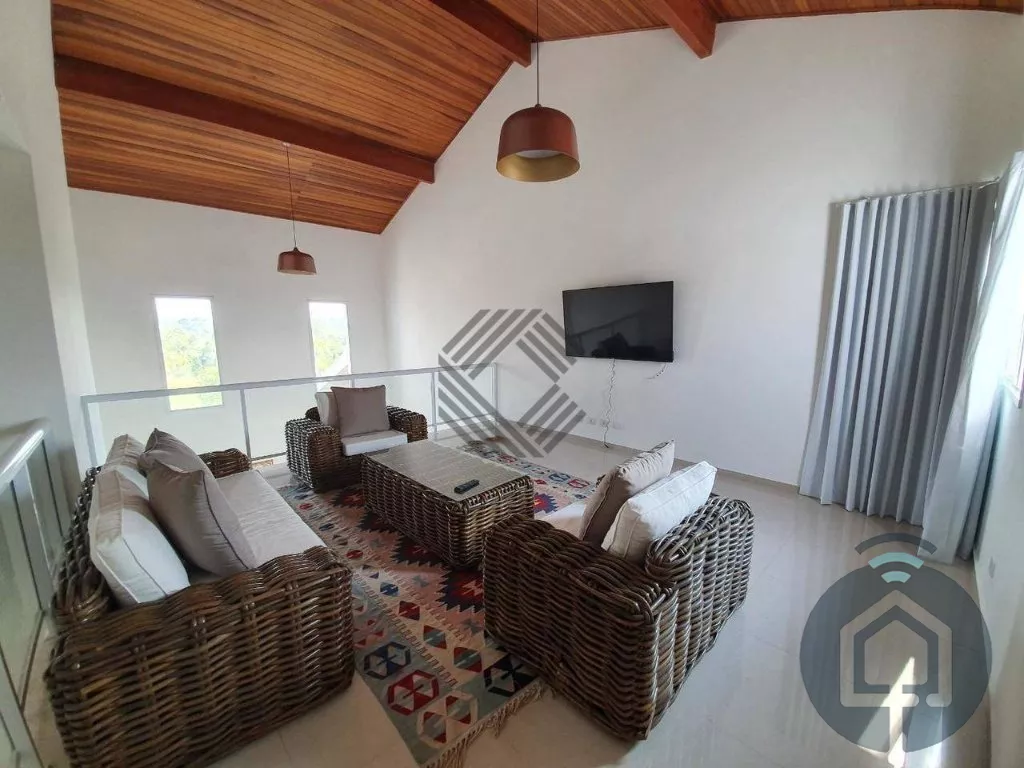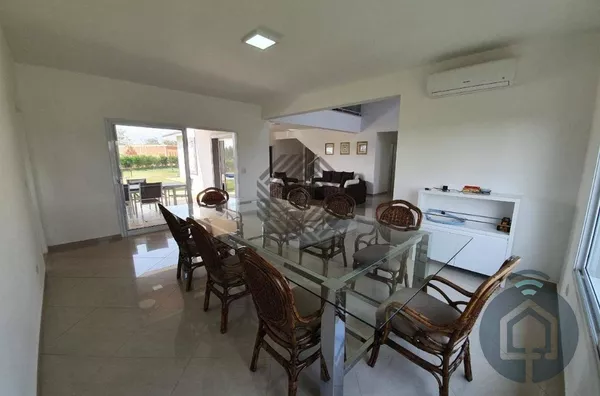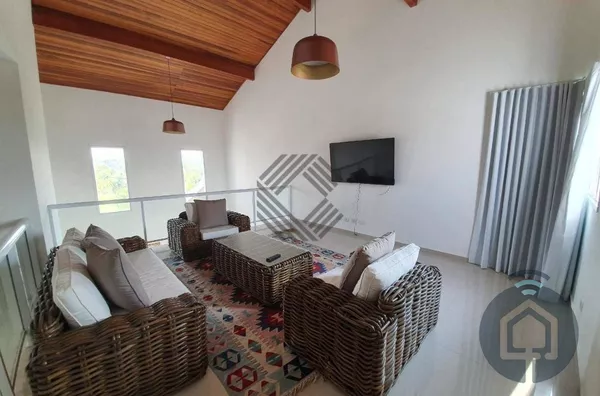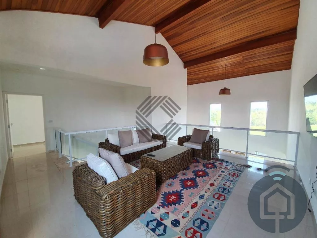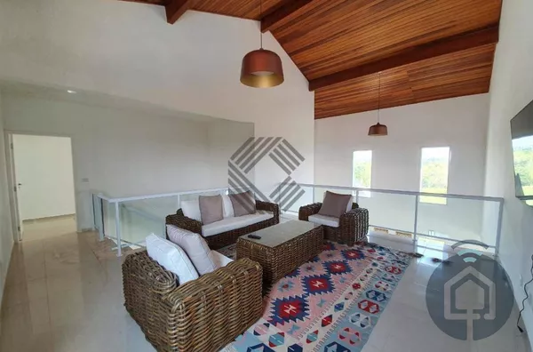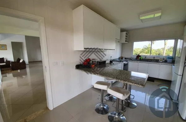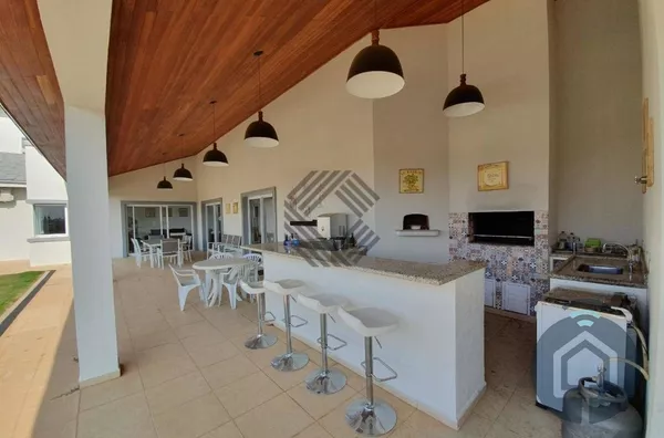 Casa de campo em condomínio de alto padrão, com ambientes amplos e arejados, excelente acabamento, planejada para proporcionar todo conforto para sua família. A casa conta com 5 suítes com closet, sendo 1 master com closet amplo e banheira de hidromassagem, sala de estar ampla com lareira, sala de tv, lavabo, sala íntima, sala de jantar, cozinha planejada, despensa, área de serviço completa com quintal técnico, banheiro de serviços e 1 suíte para colaboradores, depósito e 4 vagas de garagem cobertas. Além disso, conta com varanda ampla e integrada com as salas, espaço gourmet com cozinha, churrasqueira e forno a lenha, amplo jardim com vista para linda piscina.