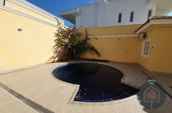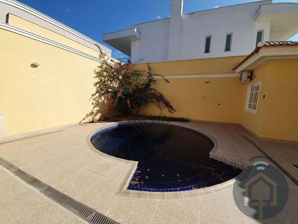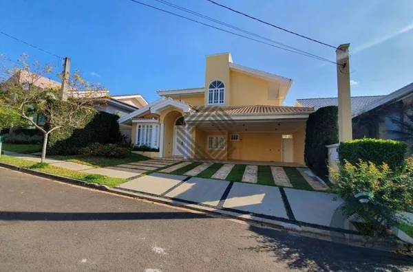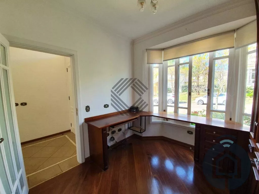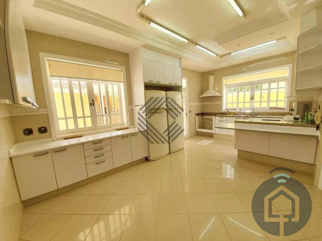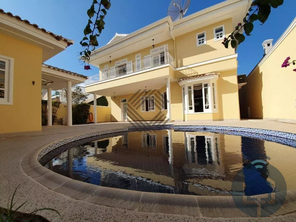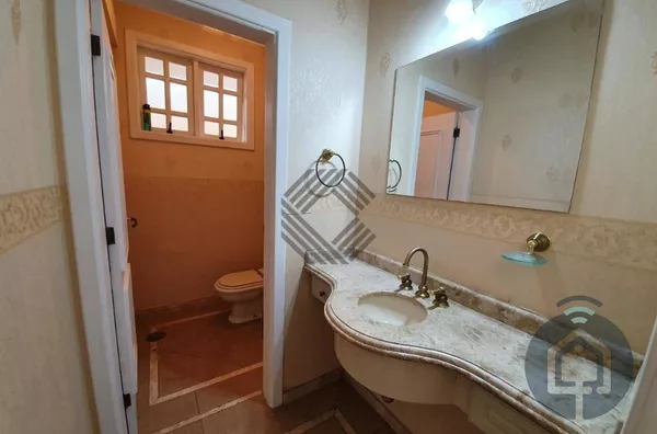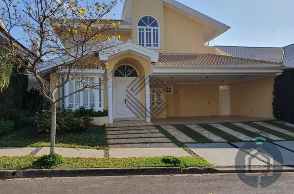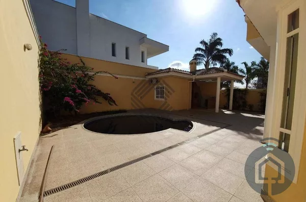 Maravilhoso sobrado em condomínio fechado, acabamento de excelente qualidade, com 3 suítes avarandadas e com armários, sendo 1 suíte máster com closet e banheira de hidromassagem, sala de estar avarandada, living com lareira, lavabo, escritório, sala de jantar, copa, cozinha planejada, despensa, área de serviço planejada, dependência de empregado, quintal gramado, área com churrasqueira, banheiro externo, depósito, piscina e 6 vagas de garagem, sendo 3 cobertas. O condomínio conta com portaria blindada e monitorada 24 horas, sistema de segurança interna e área de lazer com salão de festas, quadra poliesportiva e bosque.