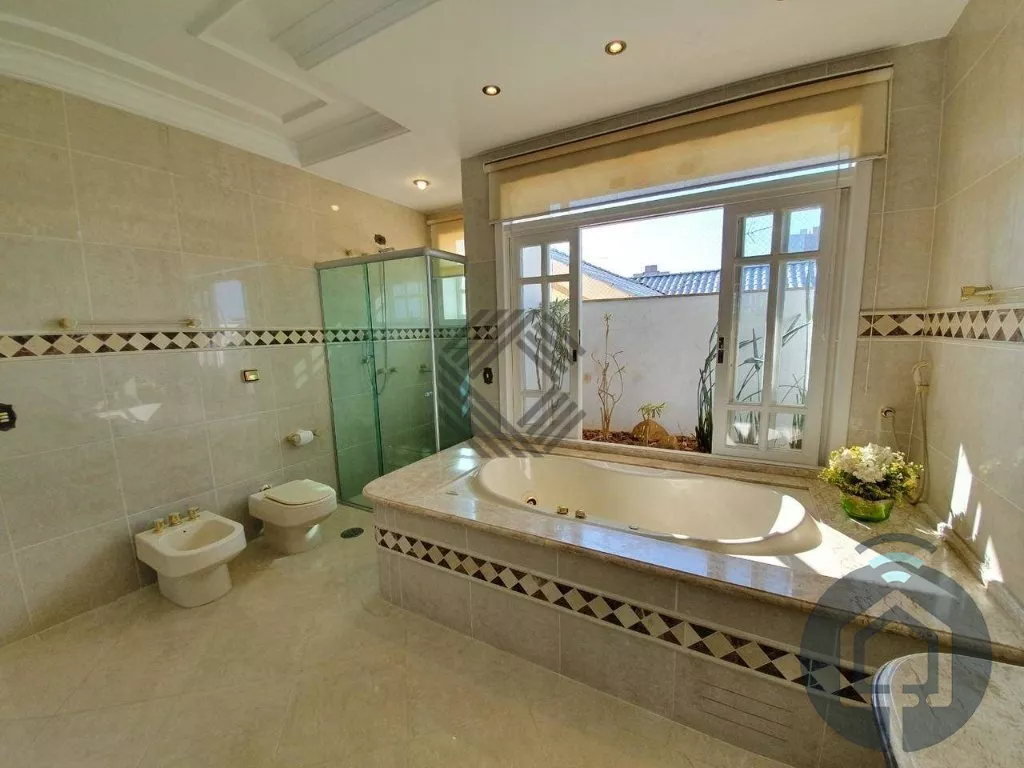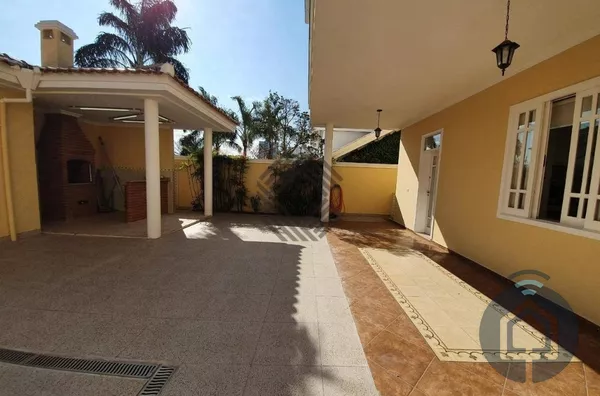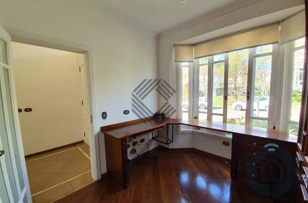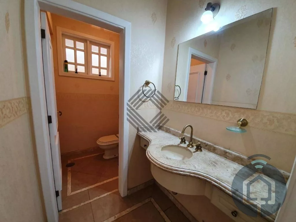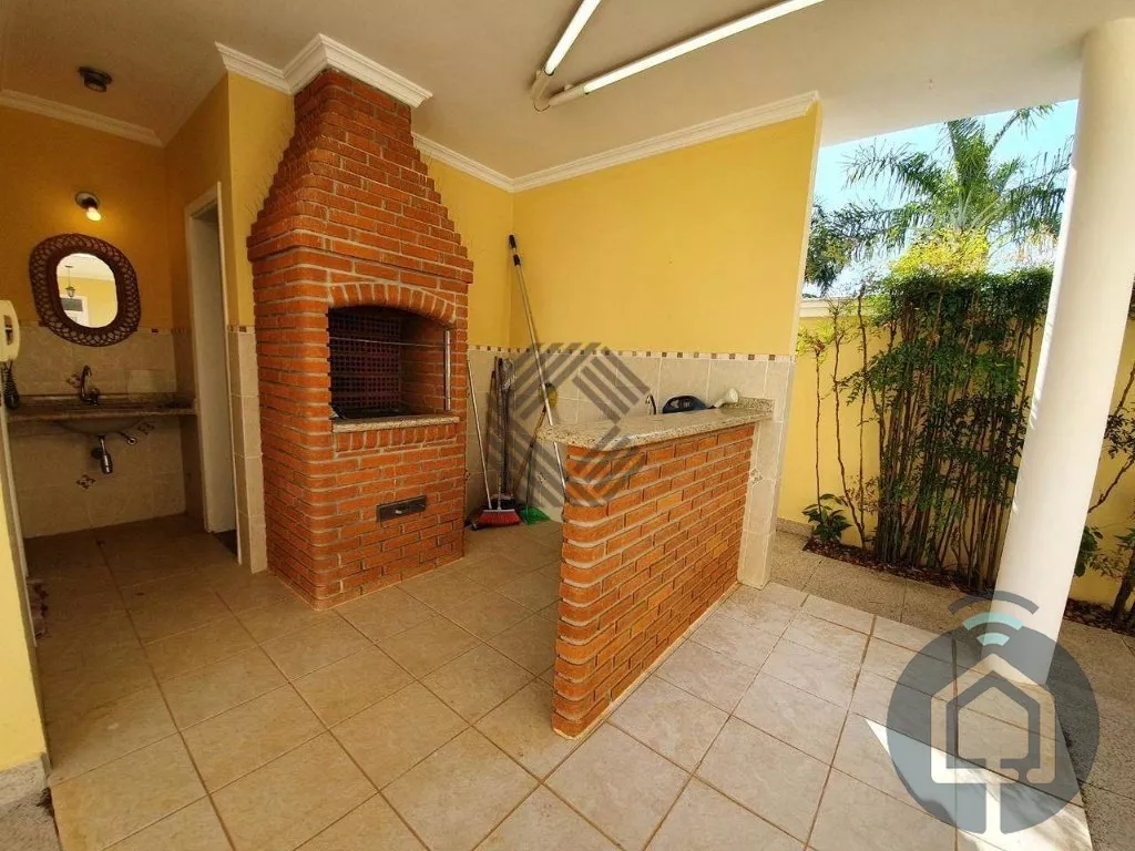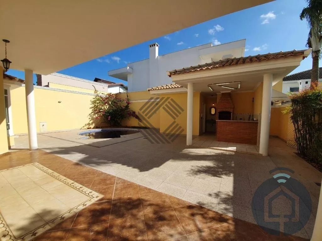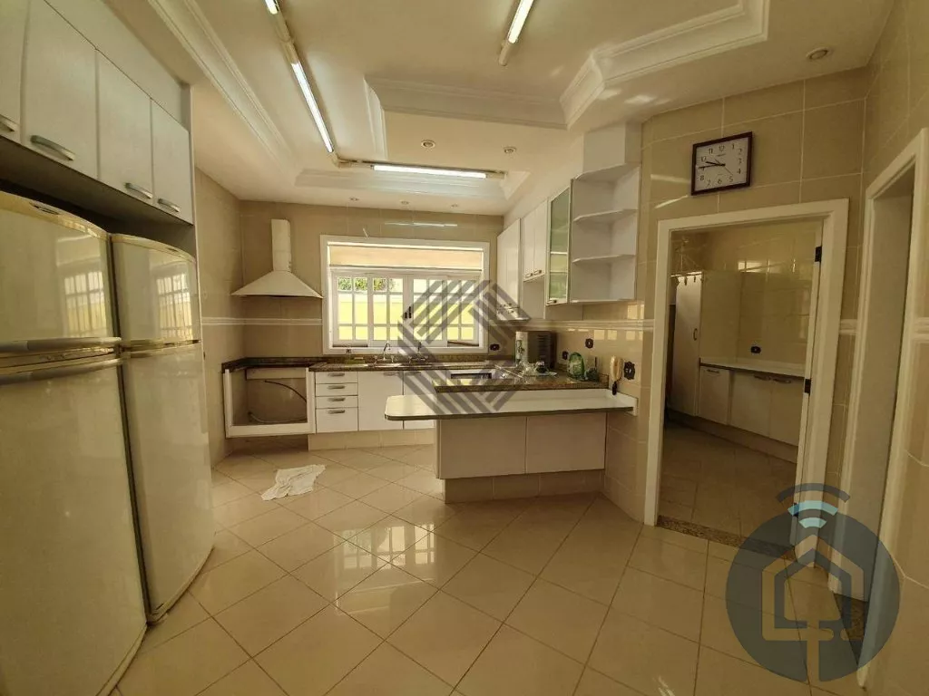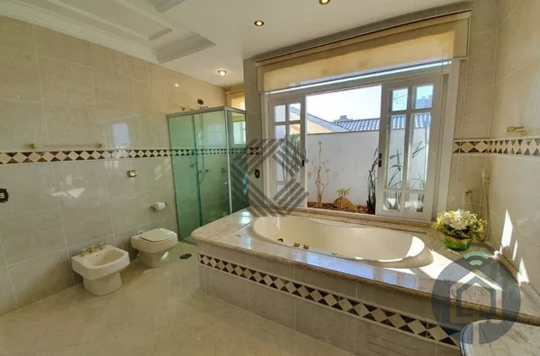 Maravilhoso sobrado em condomínio fechado, acabamento de excelente qualidade, com 3 suítes avarandadas e com armários, sendo 1 suíte máster com closet e banheira de hidromassagem, sala de estar avarandada, living com lareira, lavabo, escritório, sala de jantar, copa, cozinha planejada, despensa, área de serviço planejada, dependência de empregado, quintal gramado, área com churrasqueira, banheiro externo, depósito, piscina e 6 vagas de garagem, sendo 3 cobertas. O condomínio conta com portaria blindada e monitorada 24 horas, sistema de segurança interna e área de lazer com salão de festas, quadra poliesportiva e bosque.