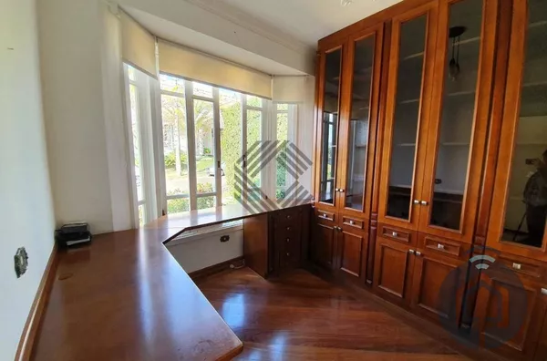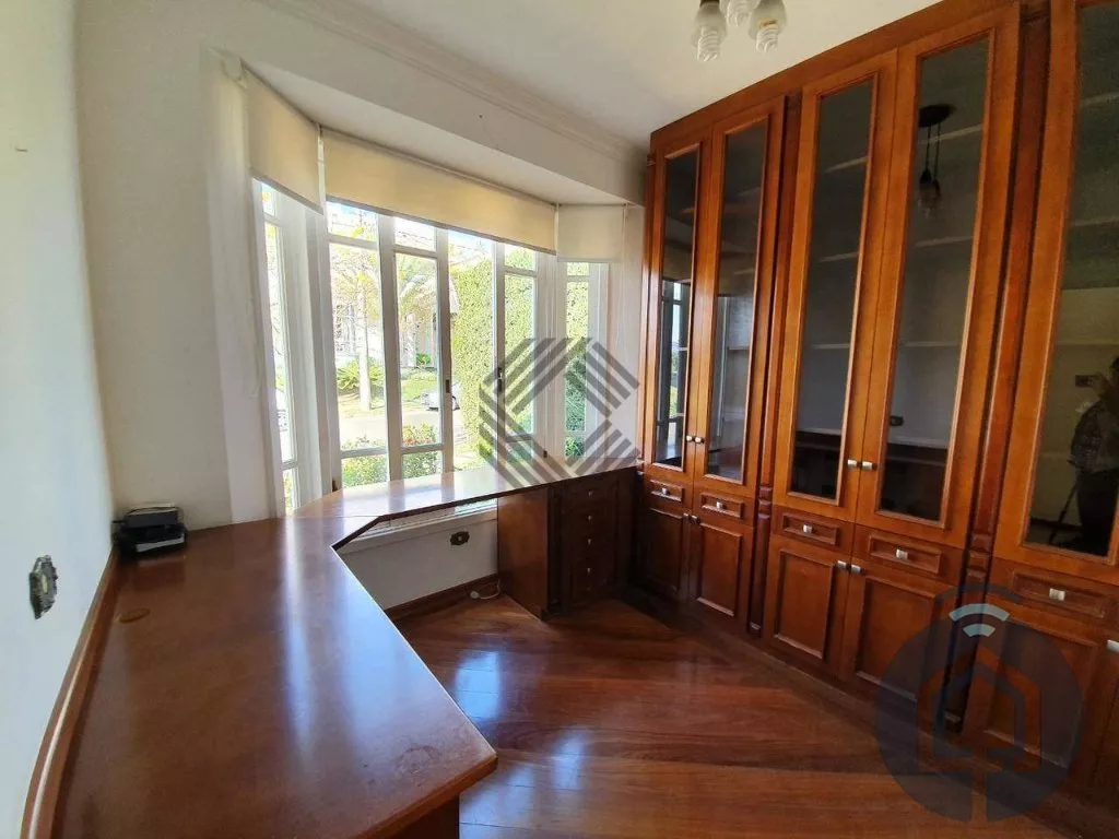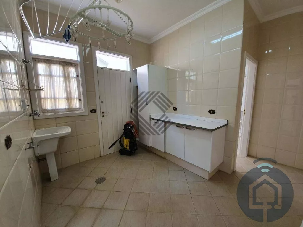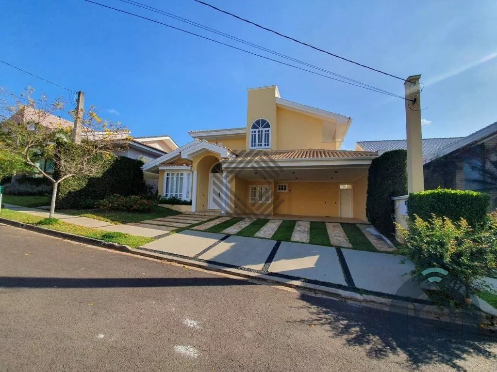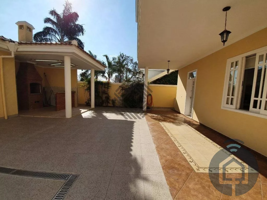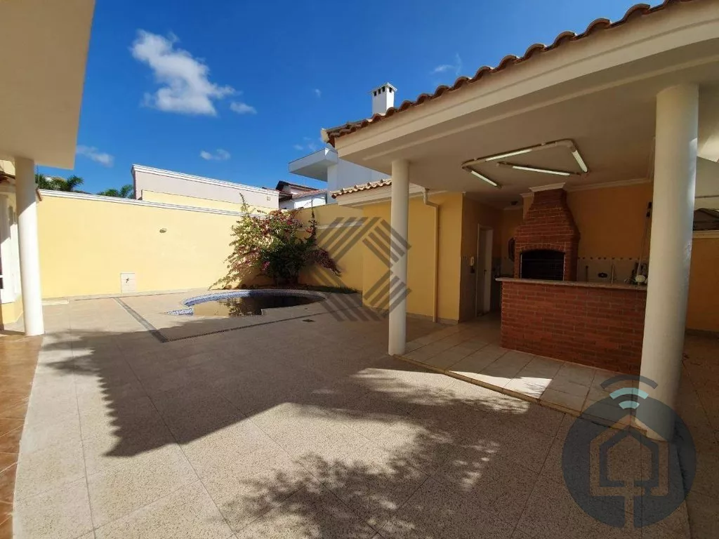 Maravilhoso sobrado em condomínio fechado, acabamento de excelente qualidade, com 3 suítes avarandadas e com armários, sendo 1 suíte máster com closet e banheira de hidromassagem, sala de estar avarandada, living com lareira, lavabo, escritório, sala de jantar, copa, cozinha planejada, despensa, área de serviço planejada, dependência de empregado, quintal gramado, área com churrasqueira, banheiro externo, depósito, piscina e 6 vagas de garagem, sendo 3 cobertas. O condomínio conta com portaria blindada e monitorada 24 horas, sistema de segurança interna e área de lazer com salão de festas, quadra poliesportiva e bosque.