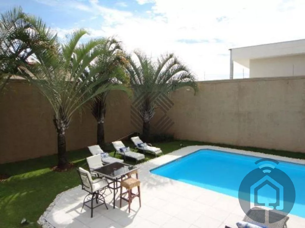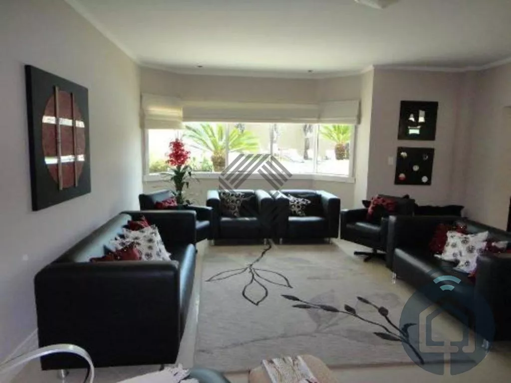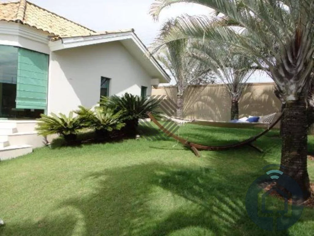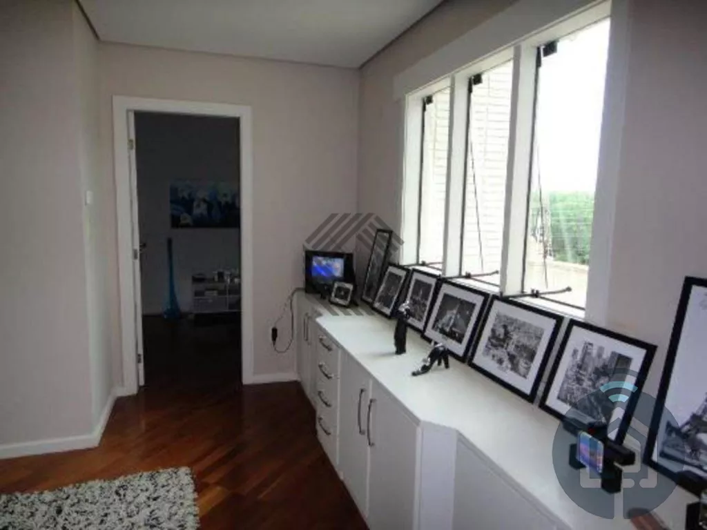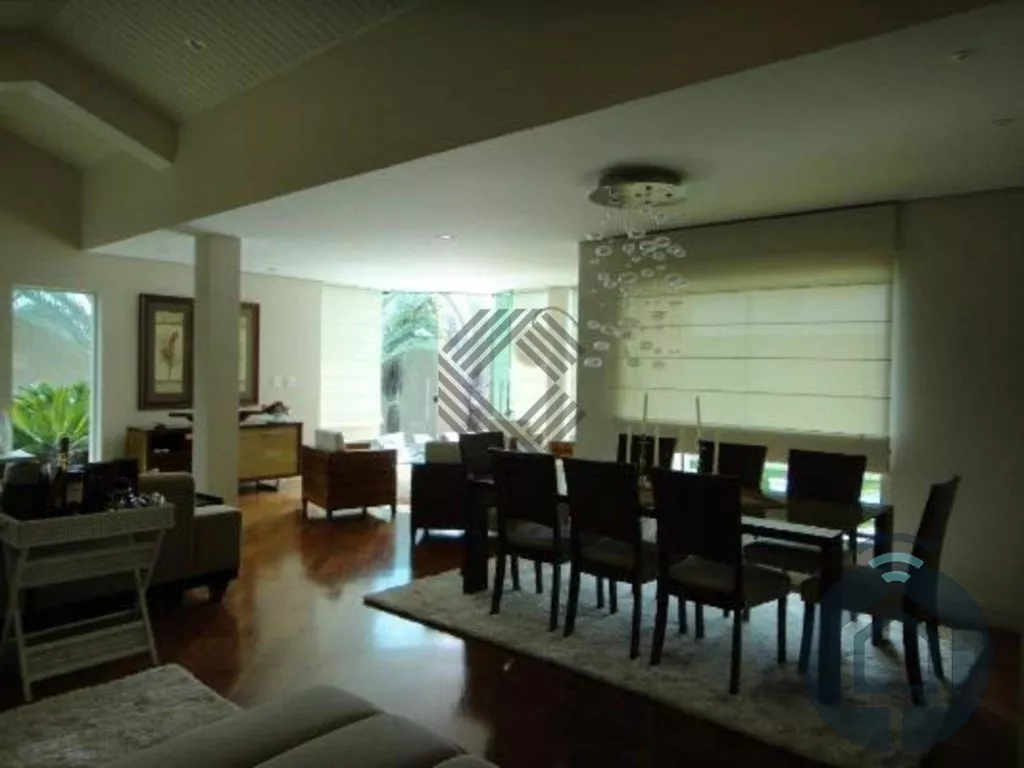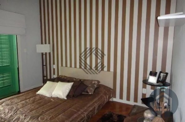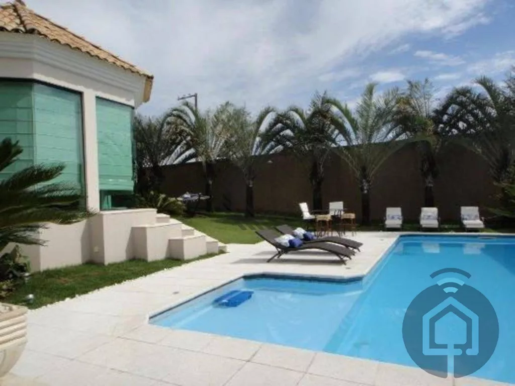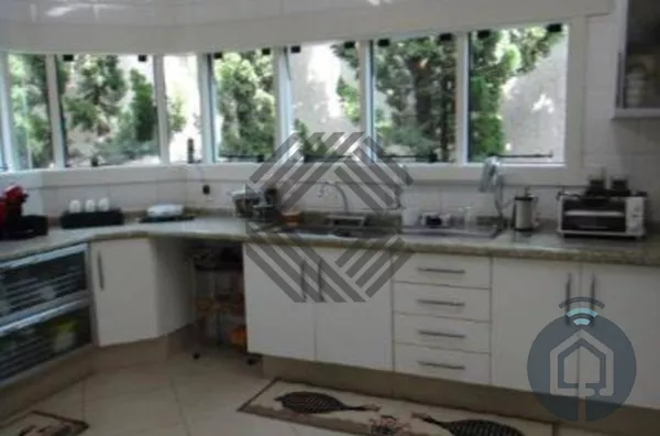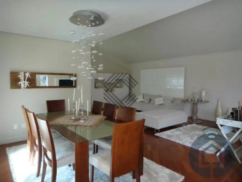 Sobrado de alto padrão, com excelente acabamento, localizado em condomínio fechado. O imóvel conta com 4 suítes avarandadas com closet planejado, sendo 1 máster com banheira de hidromassagem, hall de entrada todo em mármore travertino, sala de estar, sala de tv e living com lareira integrados, lavabo em mármore travertino, copa, cozinha planejada, despensa e lavanderia com armários modulados, dependência de empregados, área de secagem de roupas, área gourmet em granito e mármore branco, churrasqueira, cozinha de apoio com armários planejados, despensa, adega, piscina com piso castellato, quintal gramado, banheiro externo de apoio e garagem para 7 carros, sendo 4 vagas cobertas.