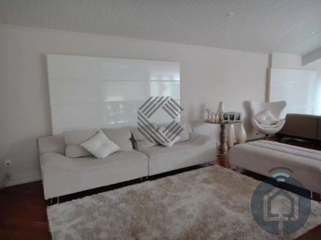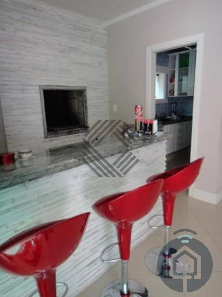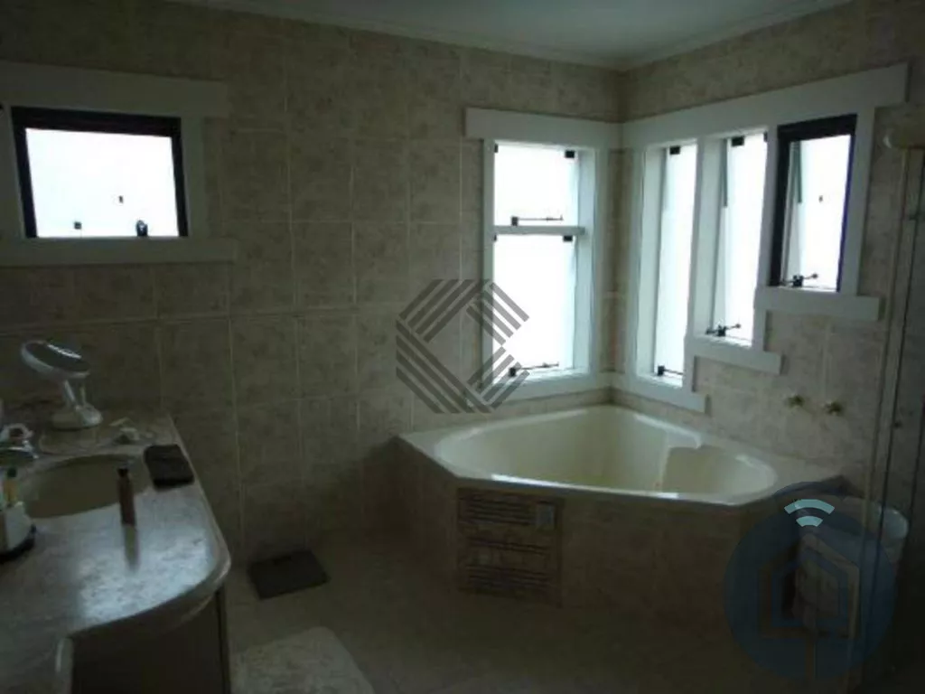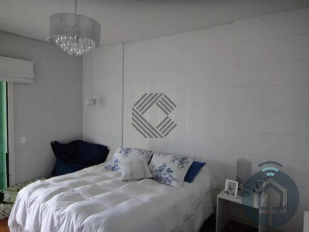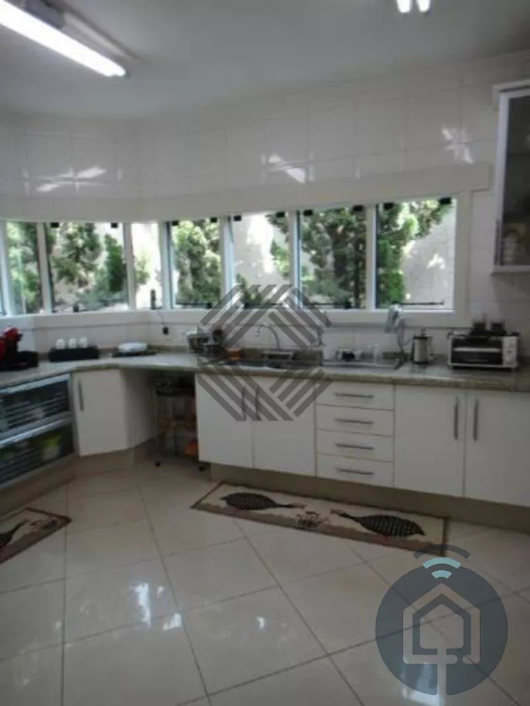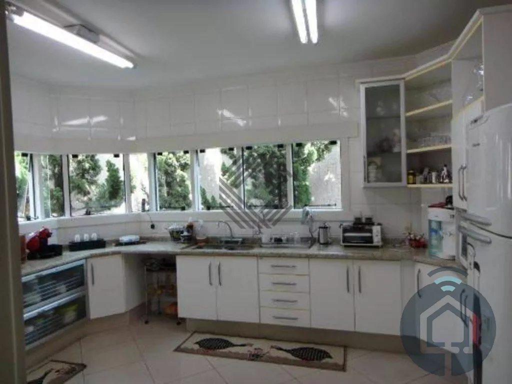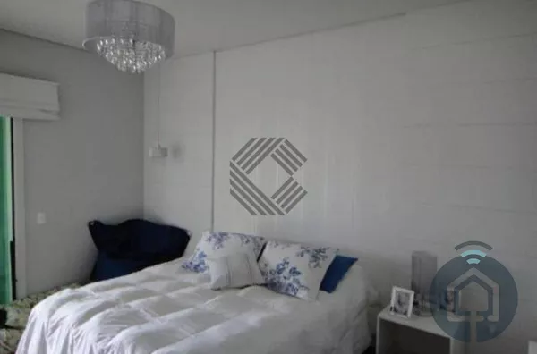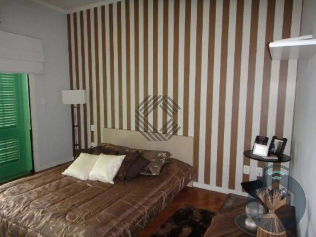 Sobrado de alto padrão, com excelente acabamento, localizado em condomínio fechado. O imóvel conta com 4 suítes avarandadas com closet planejado, sendo 1 máster com banheira de hidromassagem, hall de entrada todo em mármore travertino, sala de estar, sala de tv e living com lareira integrados, lavabo em mármore travertino, copa, cozinha planejada, despensa e lavanderia com armários modulados, dependência de empregados, área de secagem de roupas, área gourmet em granito e mármore branco, churrasqueira, cozinha de apoio com armários planejados, despensa, adega, piscina com piso castellato, quintal gramado, banheiro externo de apoio e garagem para 7 carros, sendo 4 vagas cobertas.