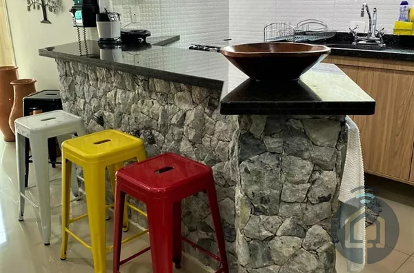 Linda casa, com fino acabamento, hall de entrada, sala de estar com lareira, sala de tv, lavabo, escritório, 3 suítes avarandadas, sendo 2 com closet, sala de jantar, adega, cozinha, despensa, área de serviço, área gourmet com churrasqueira, 1 banheiro externo, piscina com aquecedor solar, casa de máquinas, quintal amplo com jardinagem, depósito, 3 vagas de garagem, portão eletrônico, sistema de alarmes, cerca elétrica, aquecedor solar e poço freático. Localizada em rua sem saída, com guarita de segurança, próxima ao mercado, padaria e outras comodidades, a 5 minutos do centro da cidade.