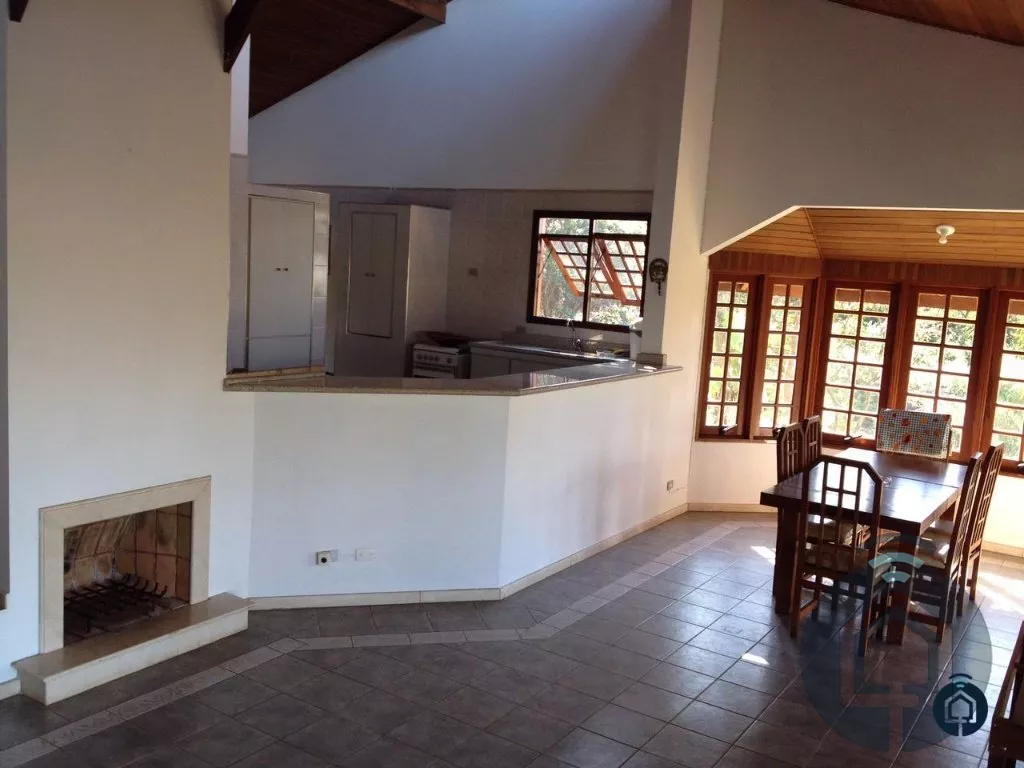Rancho com área total de 62.400 m², casa de campo avarandada com 3 suítes, com 1 cama de casal e 6 de solteiro, sala de estar com lareira, lavabo, cozinha americana com fogão e duas geladeiras, área gourmet com churrasqueira e forno a lenha, banheiro externo, piscina e estacionamento. Além disso, conta com campo de futebol society, haras com 5 baias, pista de equitação, canil, casa de caseiro e uma vista deslumbrante, localizado em meio a natureza.