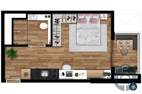 Excelente studio, com fechadura eletrônica, mall de conveniências e serviços, 1 dormitório, varanda, banheiro social e cozinha integrada. O condomínio conta com área fitness e lavanderia. A menos de 40 passos da estação Brooklin do metrô para você trocar o trânsito por hora extra com a família, próximo a padarias, restaurantes e shoppings e com lazer completo em diferentes opções de planta para você preencher com a sua história.