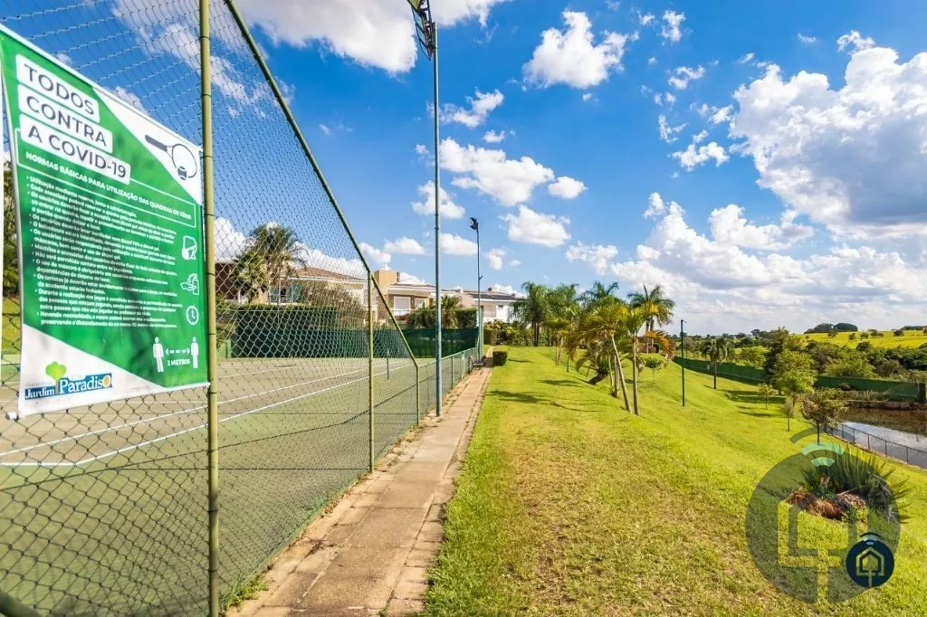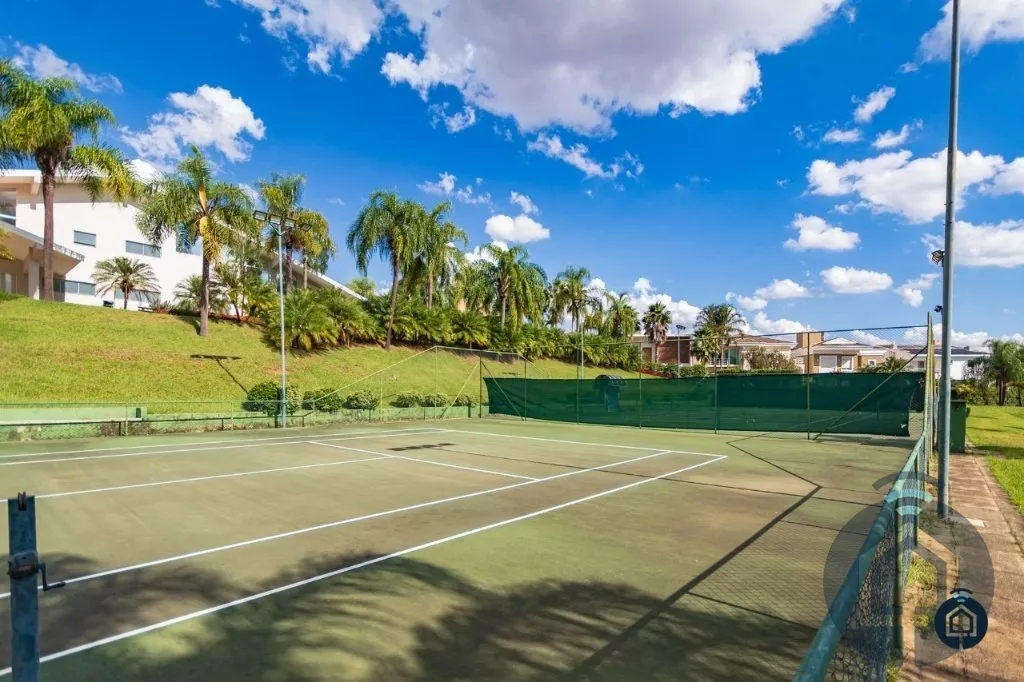 Condomínio com portaria e segurança 24 horas, área verde com lagos, trilha para caminhada, academia profissional, 2 quadra de tênis, quadra poliesportiva, campo de futebol, quiosque completo com churrasqueira, cooktoop, TV, WC, mini campo de Golf, salão de festa, salão de festas, salão de jogos, piscinas adulto e infantil, sauna, Masc/fem. e playground.