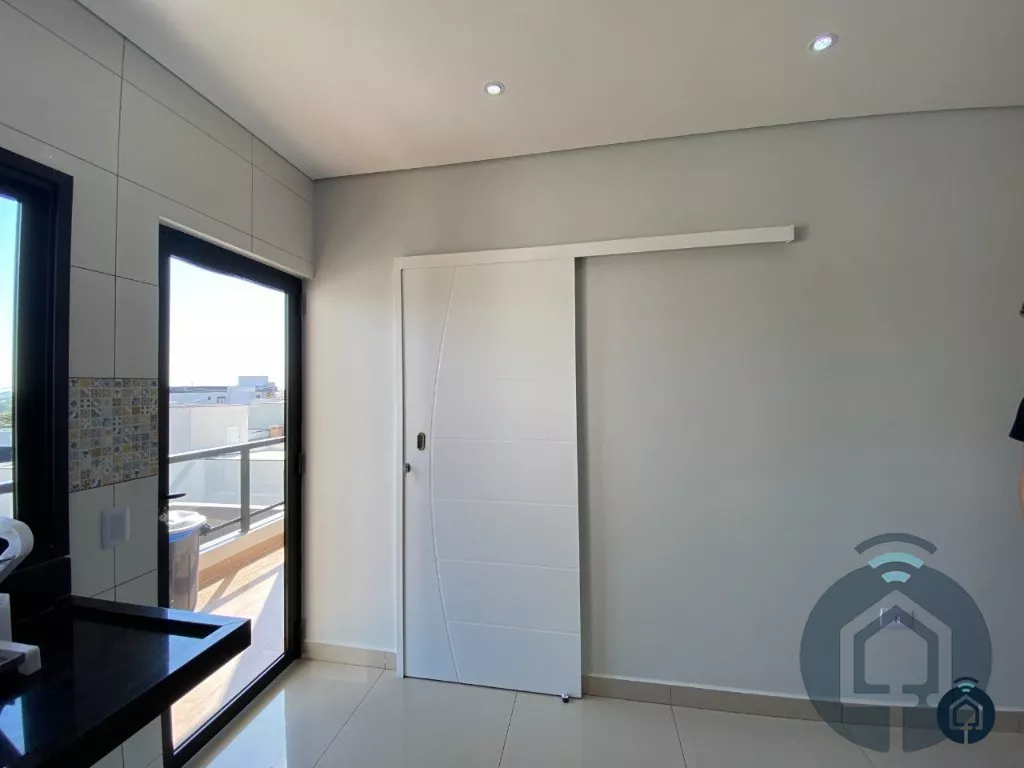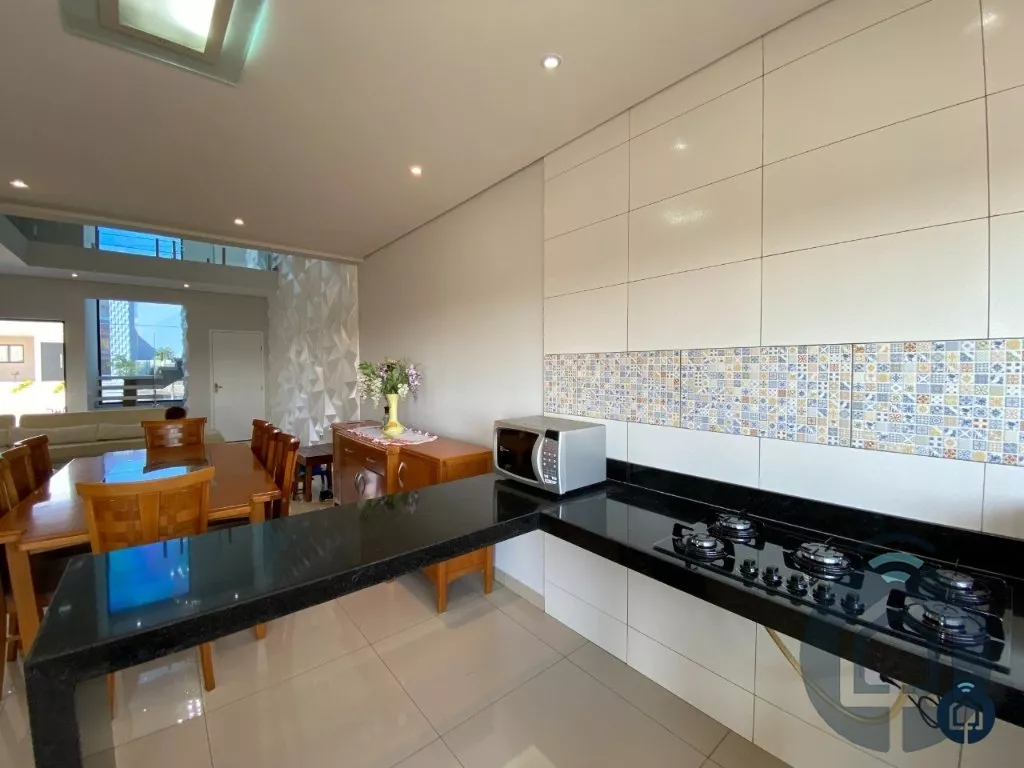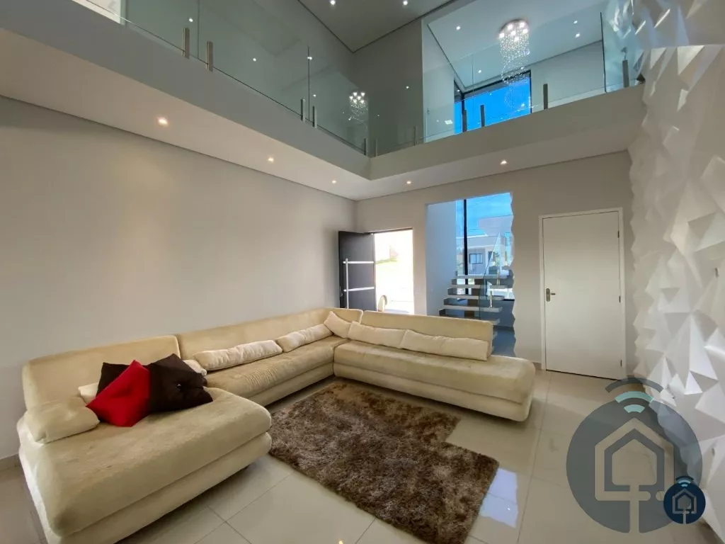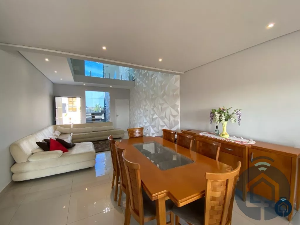 Excelente sobrado de alto padrão com 3 pavimentos, localizado em condomínio fechado. O 1º pavimento é composto por um salão de festas de 50 m² com pé direito de 7 metros, área gourmet com churrasqueira e despensa. O 2º pavimento conta com ampla sala de estar, lavabo, sala de jantar, cozinha americana integrada, área de serviço e 1 dormitório e no 3º pavimento temos 3 dormitórios, sendo 1 suíte com closet e hidromassagem e sendo 2 dormitórios com varanda ampla.