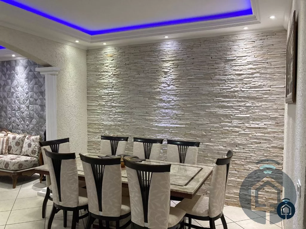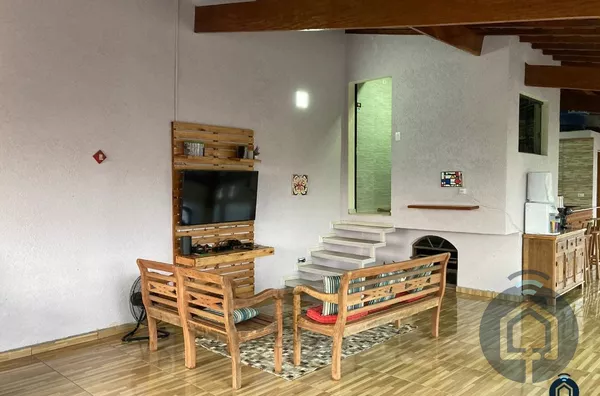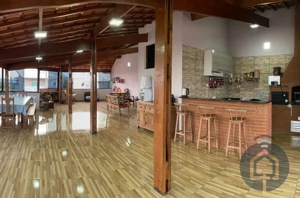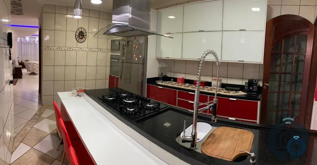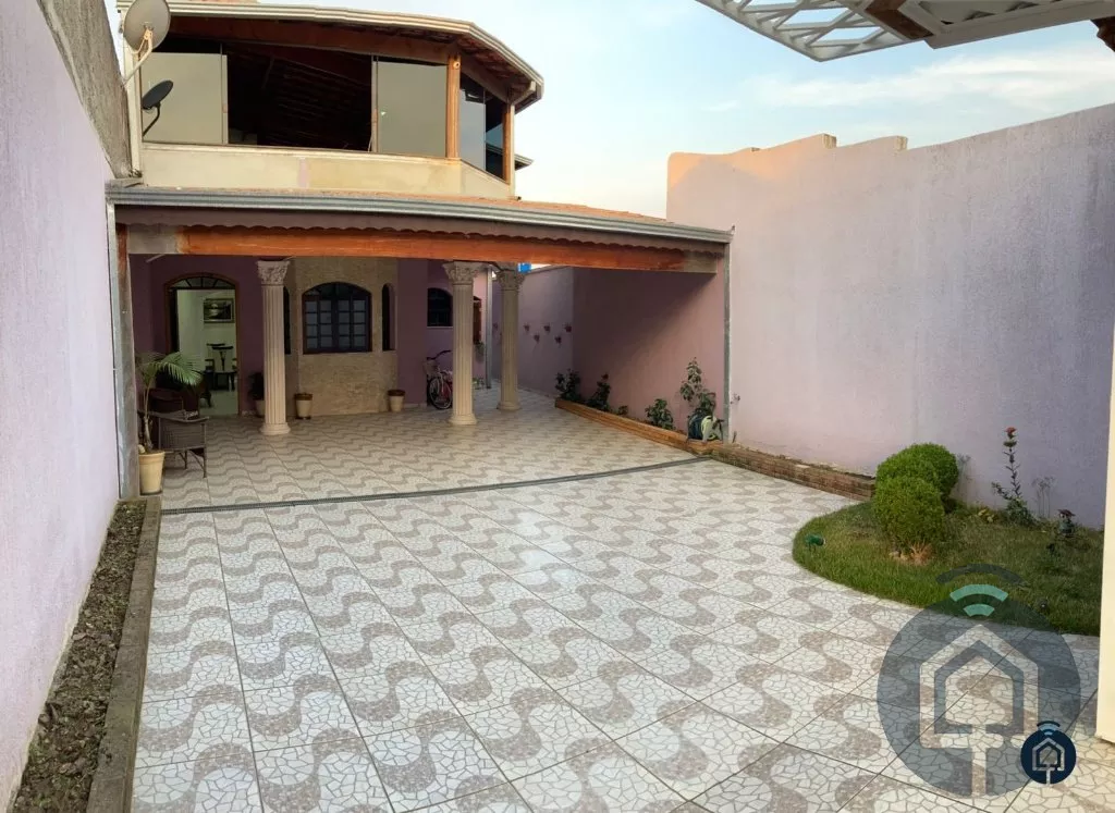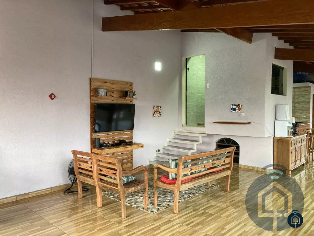 Excelente casa térrea mobiliada, com ótimo acabamento, 2 suítes com planejados, sendo a suíte principal com banheira de hidromassagem, ampla sala de estar, sala de de jantar integrada, banheiro social, sala de tv com painel (opção de mais 1 dormitório), cozinha planejada com cooktop e coifa, lavanderia, ampla área gourmet planejada com cooktop e churrasqueira, lavabo, escritório, depósito externo, quintal, garagem para 5 automóveis com portão automatizado. O imóvel conta ainda com iluminação moderna e diferenciada com gesso e sancas com led, água quente e fria em todas as torneiras, sistema de aquecimento solar, sistema de captação de água para reuso e sistema de monitoramento por câmeras.