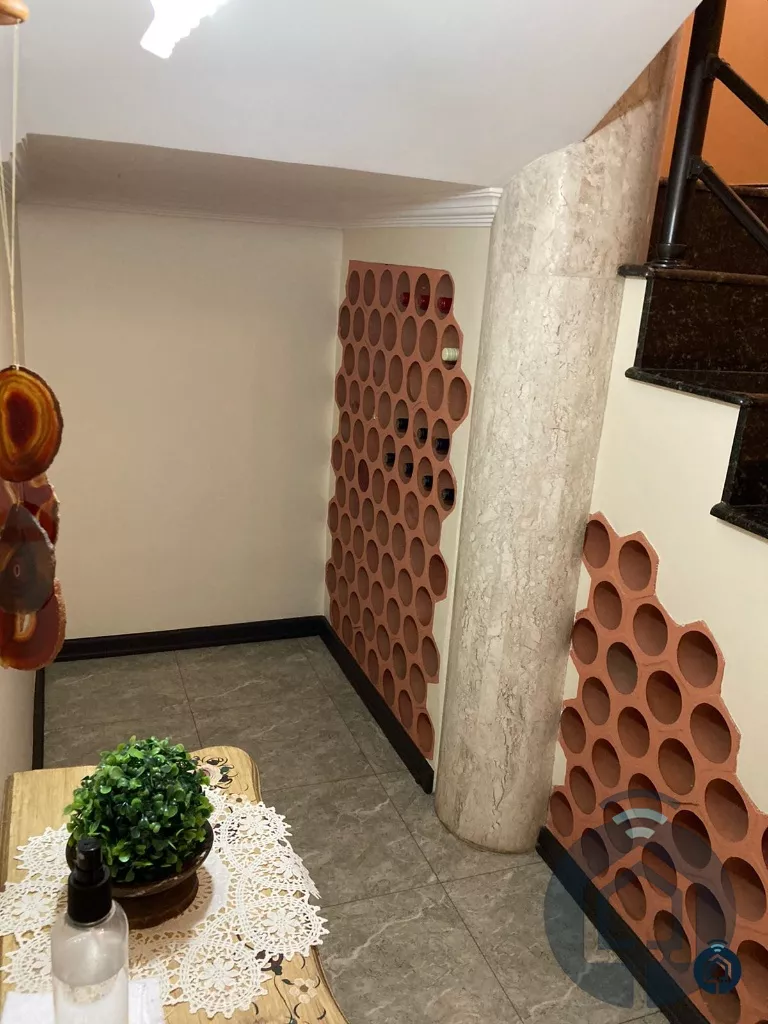 A parte inferior da casa foi pensada para o lazer e praticidade, com uma adega para os apreciadores de vinho, acesso direto à garagem e um espaço closet com armários planejados em ambas as paredes. A lavanderia também está equipada com armários, assim como o banheiro de serviço. Para mais conforto, a casa conta com dois depósitos e uma garagem com capacidade para 10 carros, sendo 5 vagas cobertas.