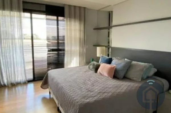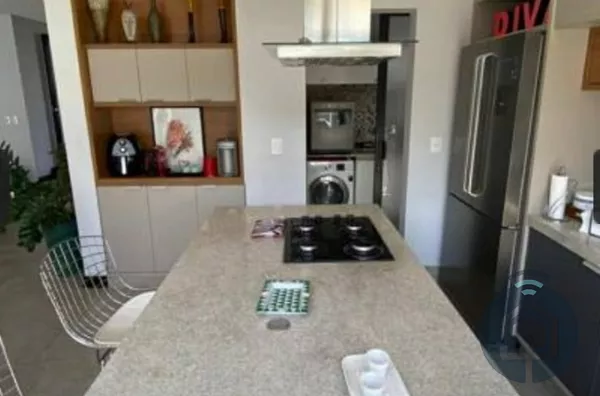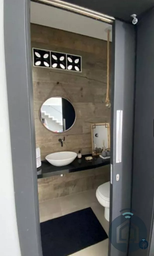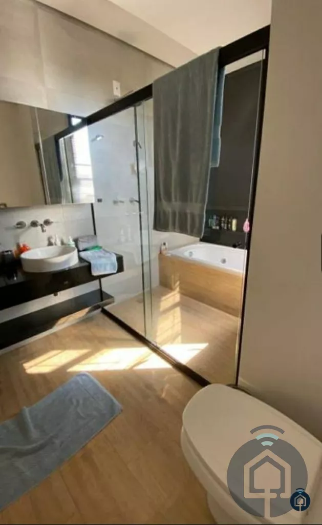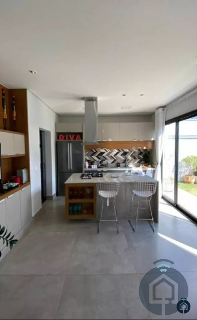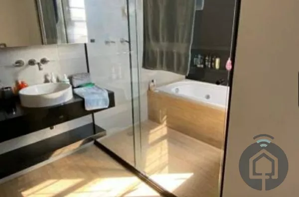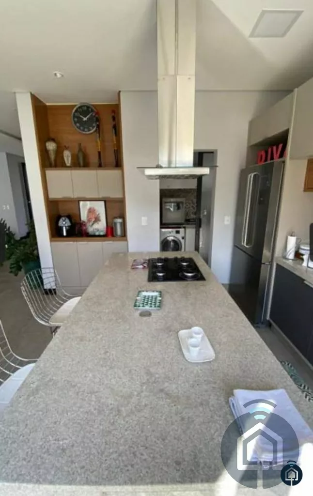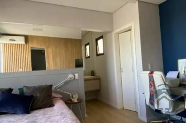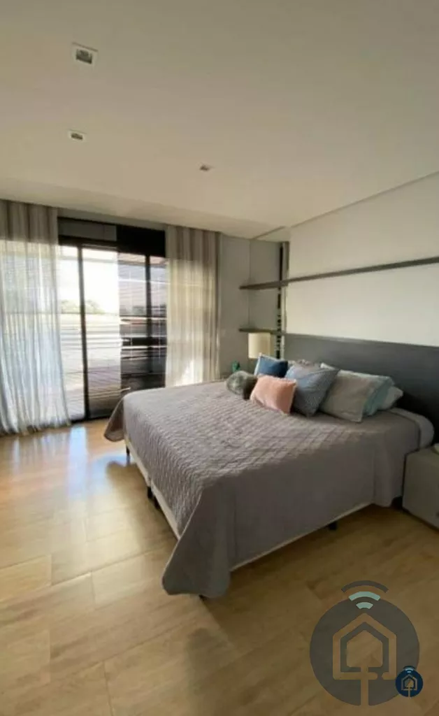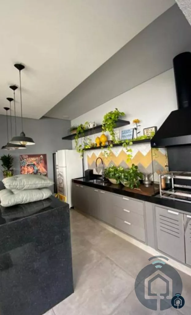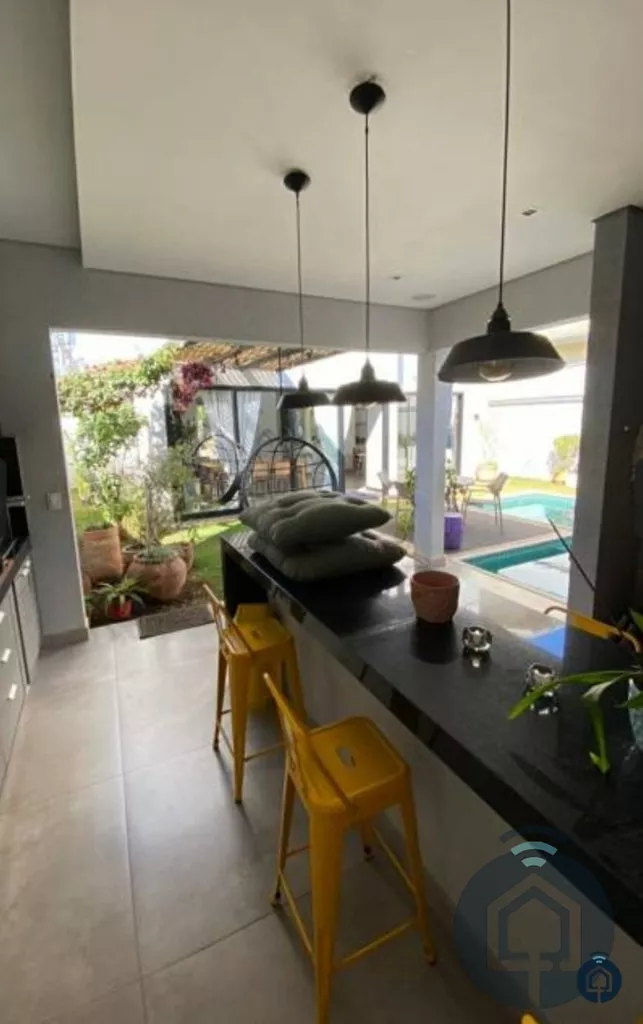 Aconchegante sobrado em condomínio, 3 suítes com ar condicionado, sendo 1 suíte máster com hidromassagem e 2 suítes com closet e varanda, ampla sala de estar, lavabo, sala de tv, sala íntima com ar condicionado, sala de jantar, cozinha planejada com ilha, cooktop, coifa e forno elétrico, lavanderia, área gourmet planejada com churrasqueira, banheiro externo, piscina aquecida, jardim, sistema de aquecimento solar e garagem para 4 automóveis, sendo 2 cobertas.
