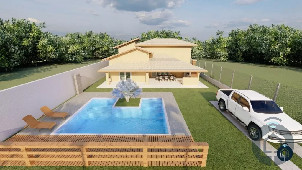 Excelente casa em condomínio, com material de alta qualidade e estrutura reforçada, 4 dormitórios, sendo 2 suítes, banheiro social completo, sala de estar, lavabo, sala de jantar, cozinha ampla, área de serviço, varanda e um lindo espaço gourmet com churrasqueira, piscina aquecida com prainha e campo de futebol.