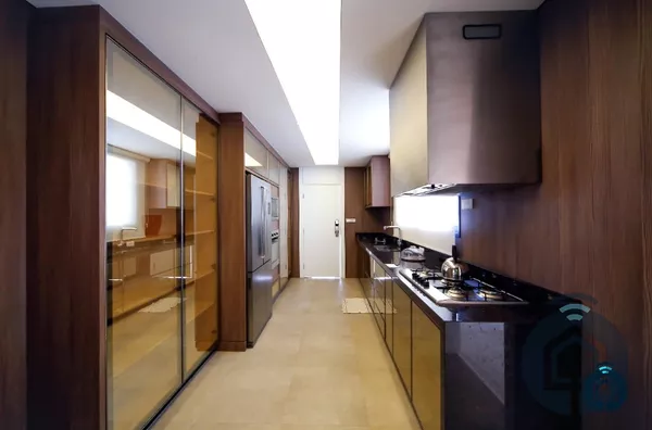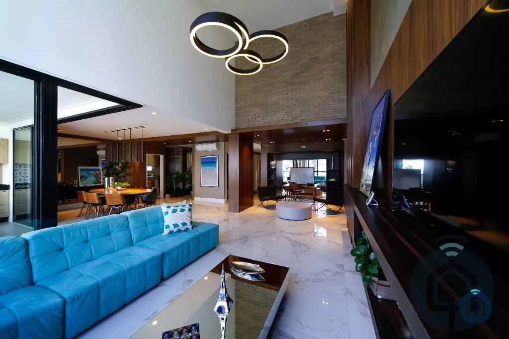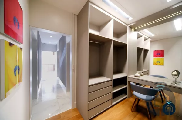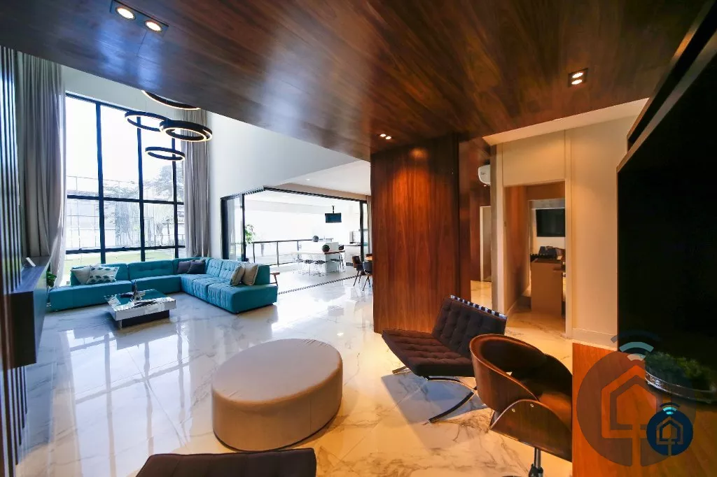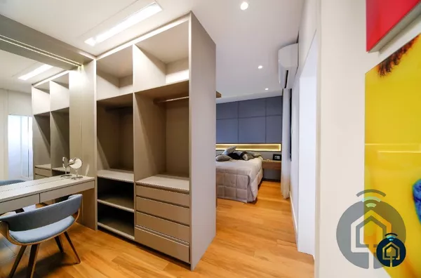 Apartamento de alto padrão com hall privativo, living com pé direito duplo, varanda gourmet, lavabo, home theater, sala de jantar, 3 suítes, sendo 1 suíte com closet e a suíte máster com closet e varanda privativa, ampla cozinha, despensa, área de serviço com banheiro, 4 vagas de garagem e depósito privativo.