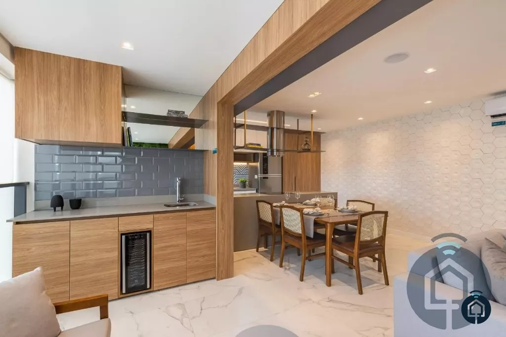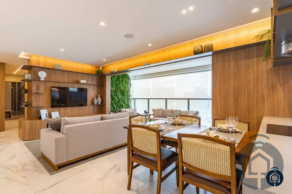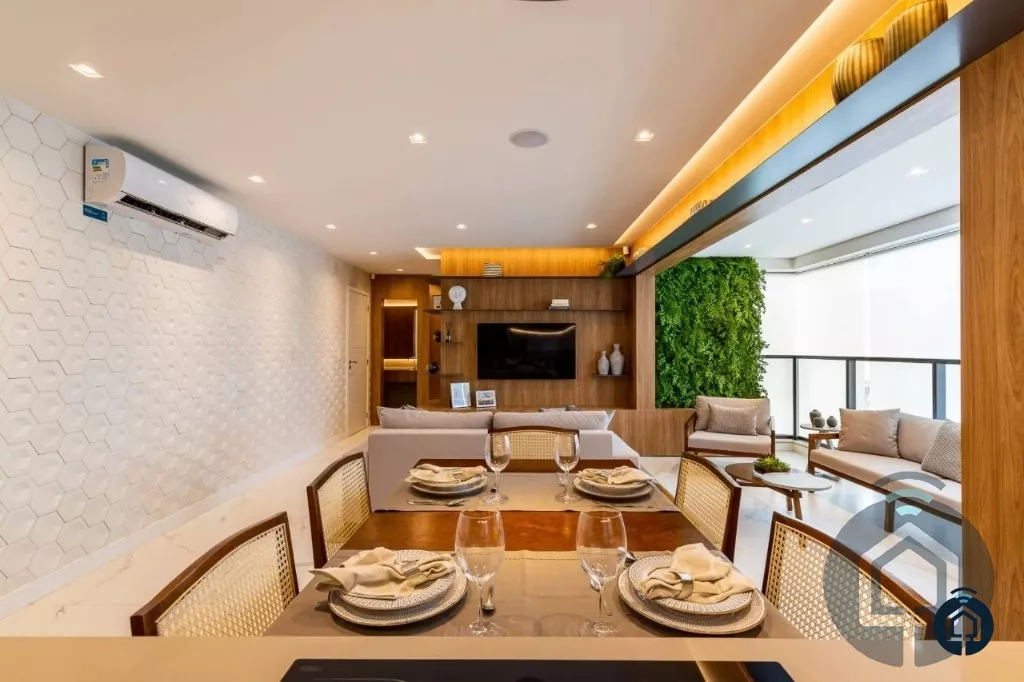 Amplo apartamento, 3 dormitórios, sendo 1 suíte máster com closet, banheiro social, sala de estar para dois ambientes, varanda gourmet integrada, lavabo, cozinha americana, área de serviço e 2 vagas de garagem.