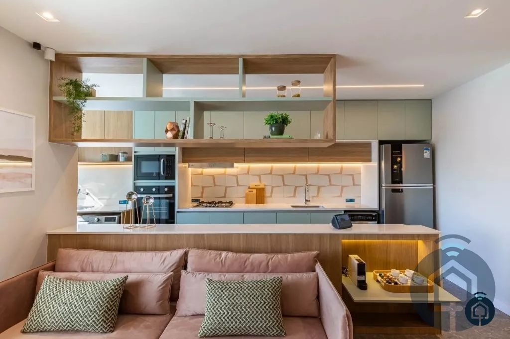 Amplo apartamento, 2 dormitórios, sendo 1 suíte, banheiro social, sala de estar para dois ambientes, varanda gourmet integrada, cozinha americana, área de serviço e 2 vagas de garagem.