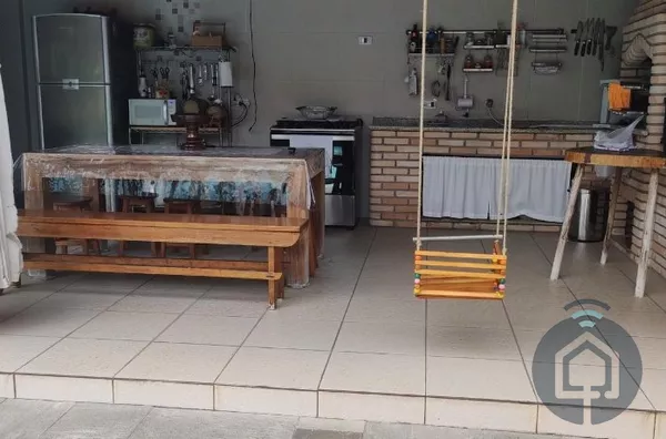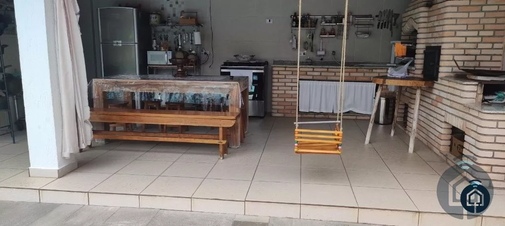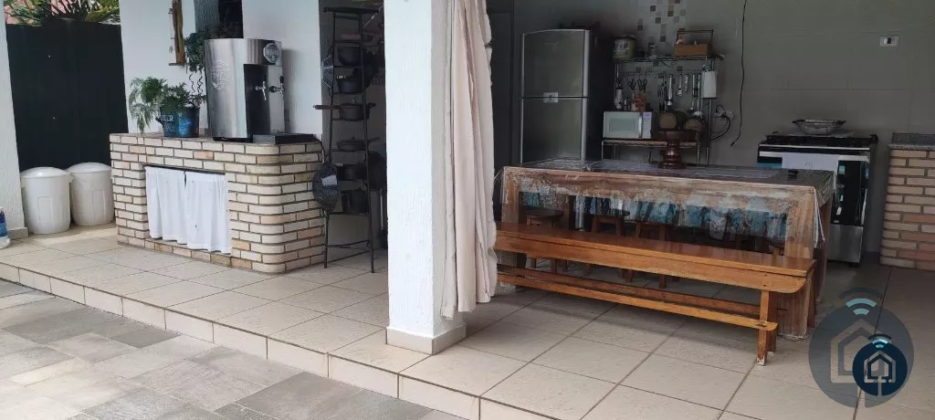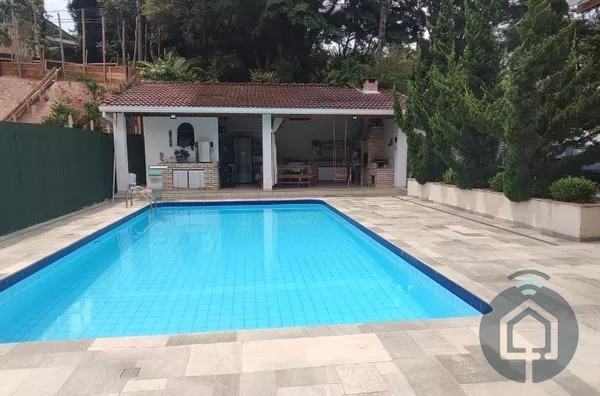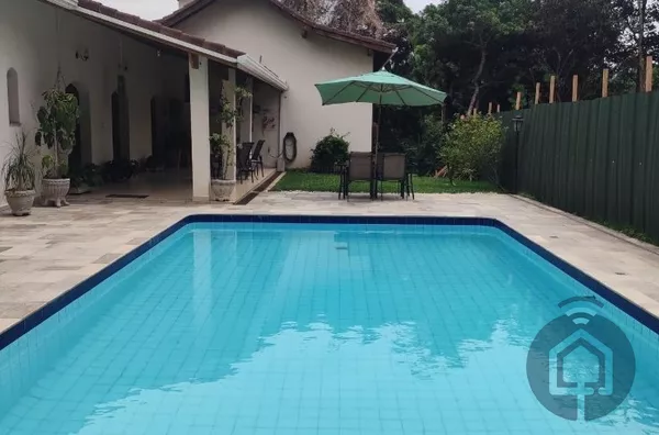 Linda casa térrea com 4 suítes com closet com armários planejados, ampla sala de estar com lareira, lavabo, sala de jantar, copa e cozinha planejada. Área de lazer com piscina, churrasqueira, fogão a lenha e jardim.
