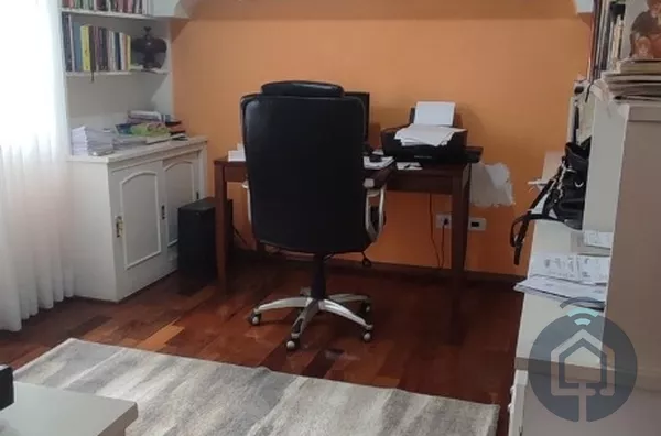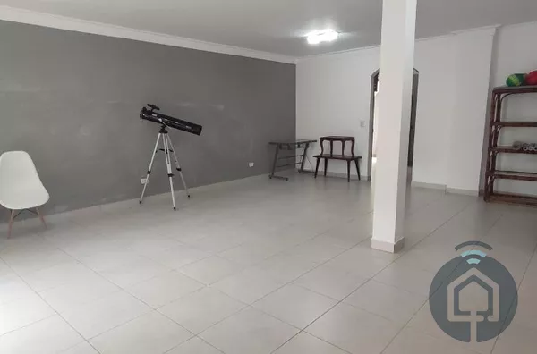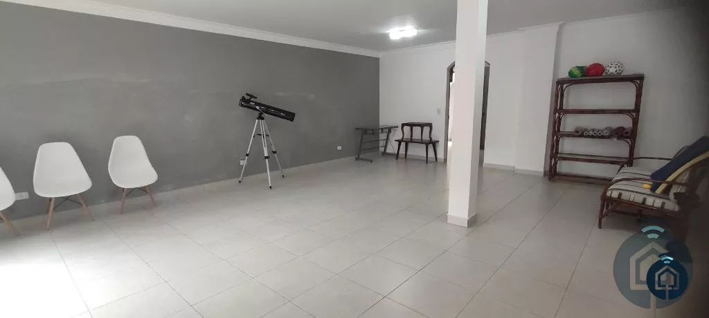 A parte inferior conta com uma ampla sala, lavanderia, dependência de funcionários, espaço para oficina e depósito.