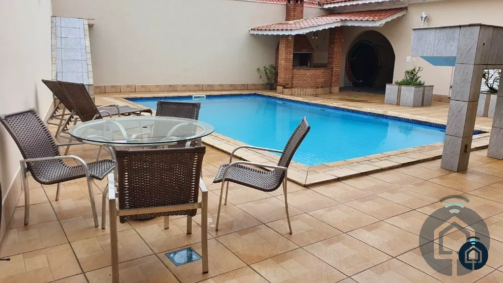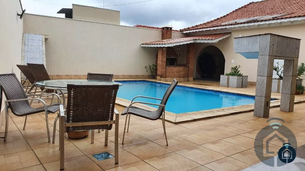 Ampla casa térrea avarandada, 3 dormitórios, sendo 1 suíte com closet e hidromassagem, banheiro social, sala de estar para dois ambientes, lavabo, sala de jantar, cozinha planejada, despensa e lavanderia. Área externa com 2 suítes, churrasqueira, piscina, amplo quintal e garagem para 3 automóveis. Conta ainda com sistema de aquecimento solar em todas as torneiras e chuveiros e porão para depósito.