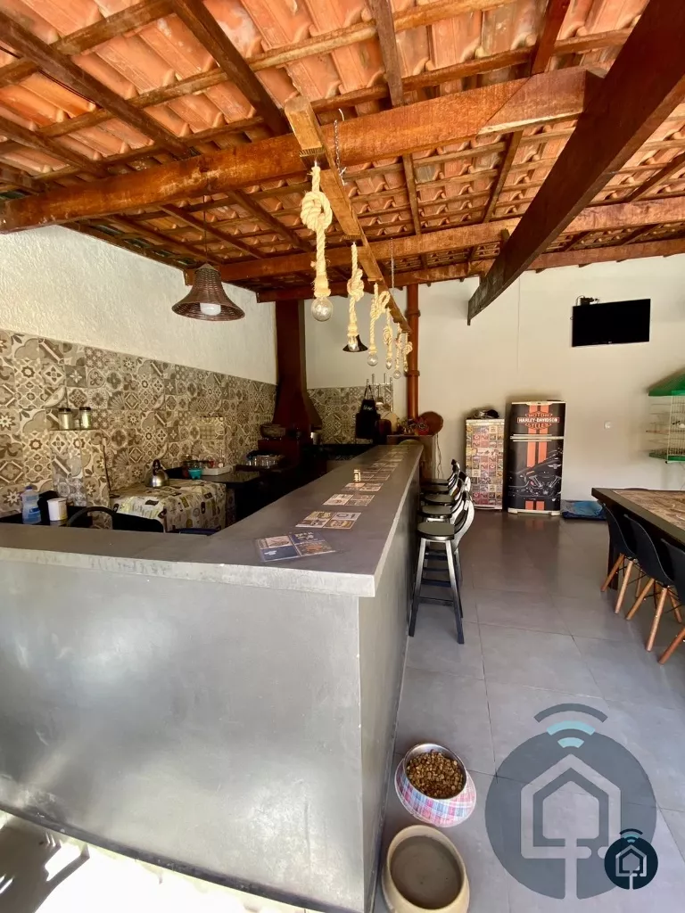 Além disso, a casa conta com uma lavanderia e um escritório, garantindo espaços adicionais para diversas necessidades. A grande área gourmet de 70m² é o ponto alto da casa, equipada com churrasqueira, forno de pizza e fogão a lenha, proporcionando a melhor experiência em encontros e refeições ao ar livre. O banheiro externo completa a comodidade da área social.