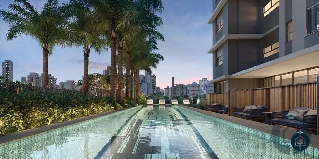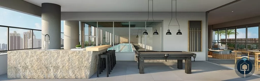 Área de lazer com salão de festas, terraço gourmet, piscinas adulto e infantil descobertas, deck molhado, piscina coberta com raia de 25 metros, fitness, brinquedoteca, playground, quadra recreativa, safe storage, pet place e bicicletário.