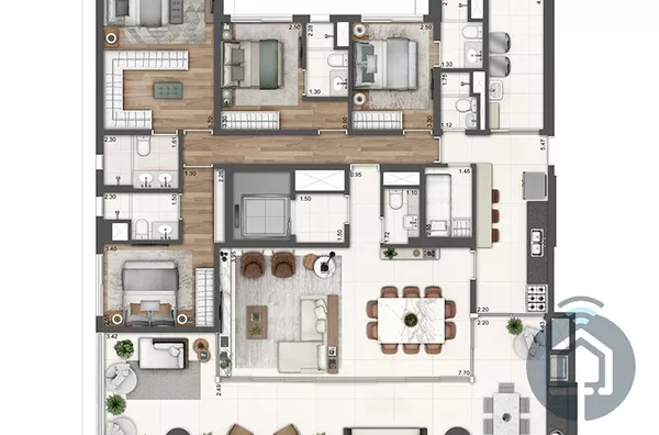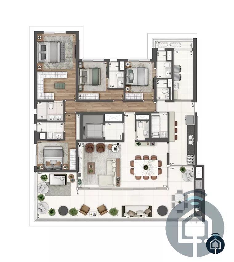Um projeto singular com 4 suítes, sofisticadas áreas de lazer e arquitetura contemporânea. Apartamentos amplos e integrados, ampla sala de estar, varanda gourmet, lavabo, cozinha, área de serviço, banheiro de serviço e 3 vagas de garagem.