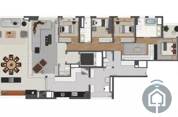 Amplo apartamento com 4 dormitórios, sendo 1 suíte com banho e closet ampliados, sala de estar com varanda gourmet integrada, lavabo, cozinha, área de serviço com banheiro, 4 vagas de garagem e depósito privativo. Área de lazer com salão de festas, churrasqueira, piscinas adulto e infantil, piscina coberta com raia de 25 metros, fitness, quadra de tênis, brinquedoteca e playgorund.