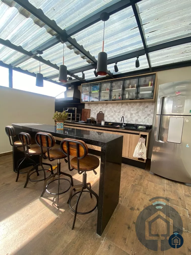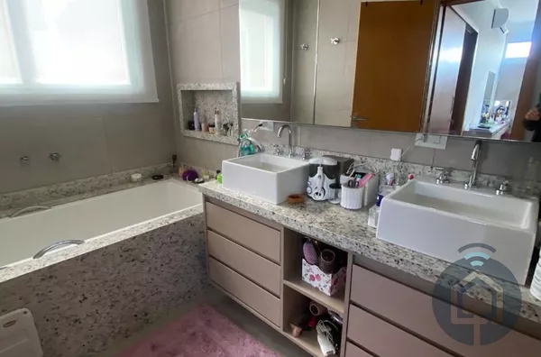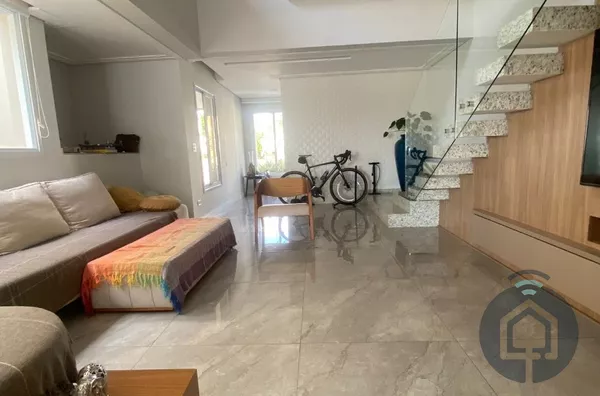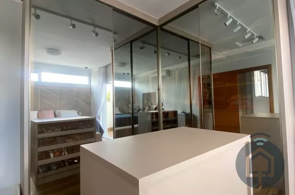 A casa ainda conta com uma sala íntima, ideal para um tempo de tranquilidade, e uma ampla sala de estar, perfeita para receber amigos e familiares em grandes momentos de confraternização. A cozinha, completa com ilha central, armários planejados e eletrodomésticos modernos, torna o preparo das refeições uma experiência prazerosa. Integrada à sala de jantar, ela cria um ambiente acolhedor para momentos especiais à mesa.